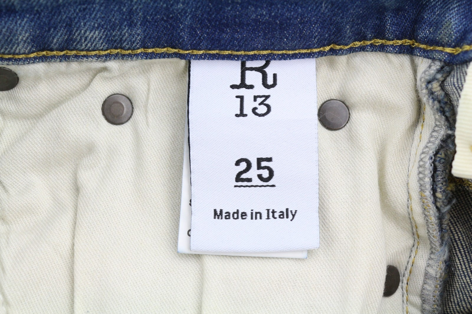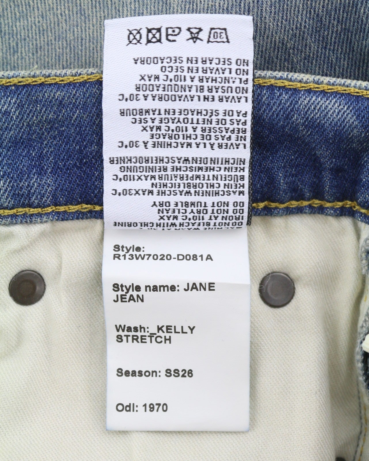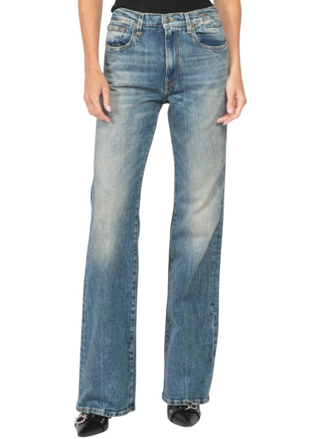 R13 Jane Women Jeans 25 Kelly Stretch High Rise Wide Leg Faded Whiskers SS26