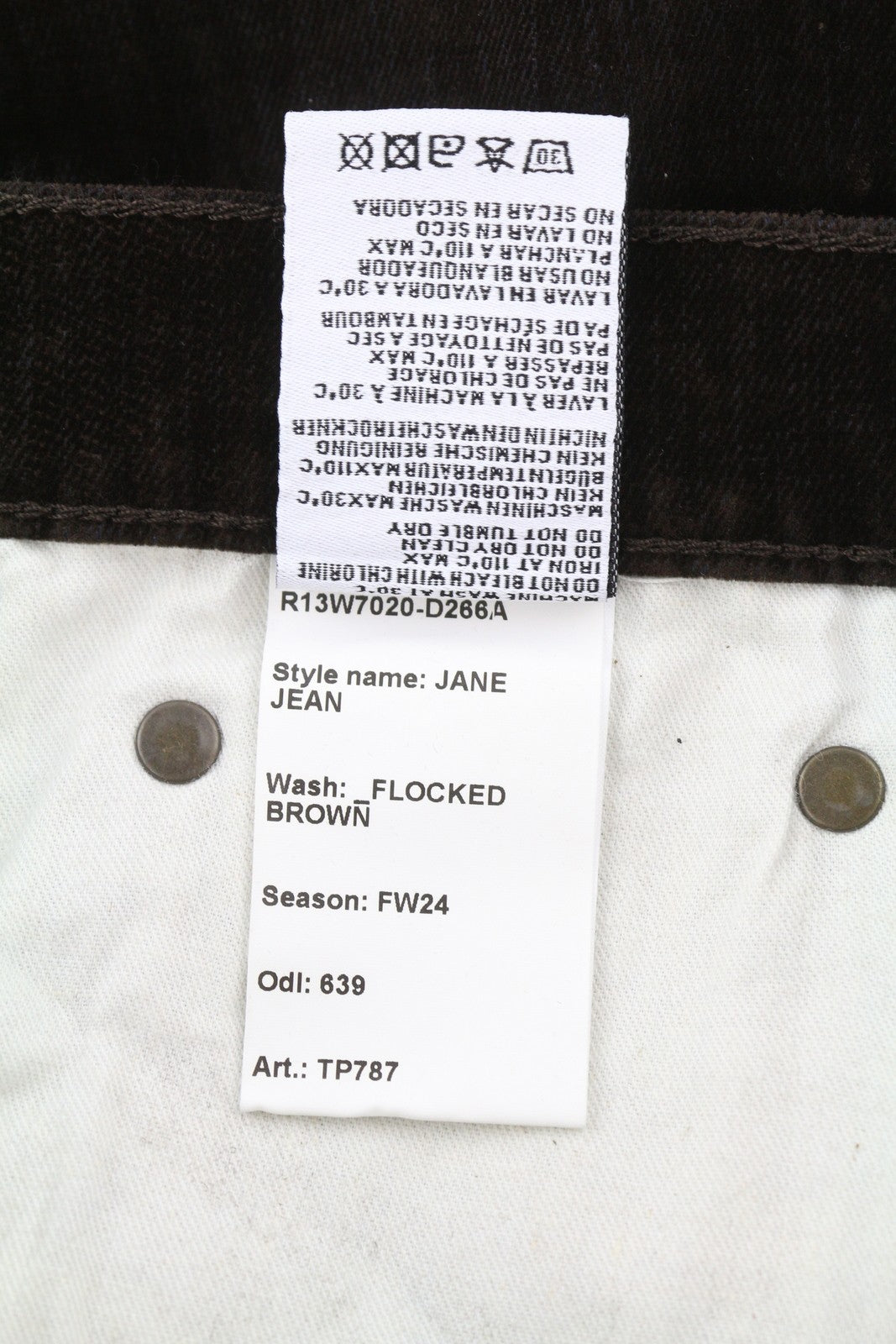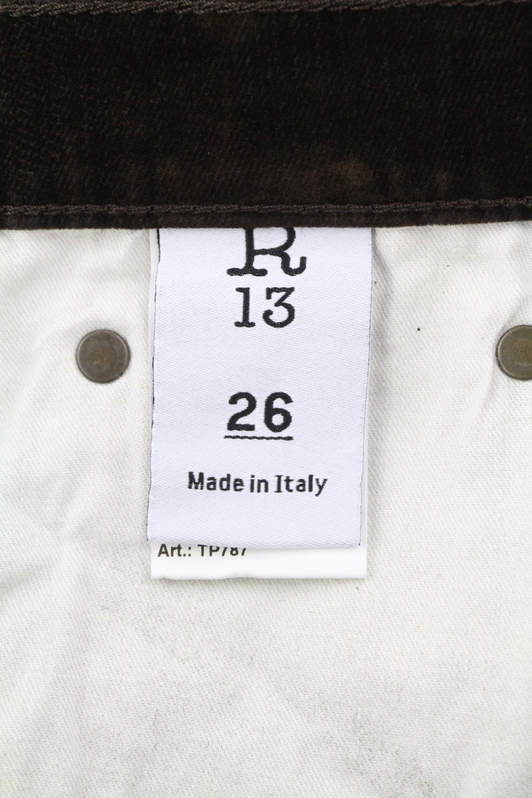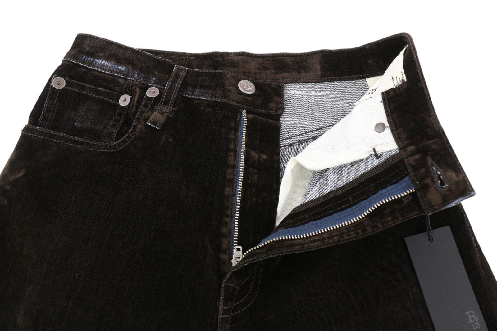 R13 Jane Women Jeans 26 Flocked Brown Velvet Soft Zipper Mid Rise Dark Denim