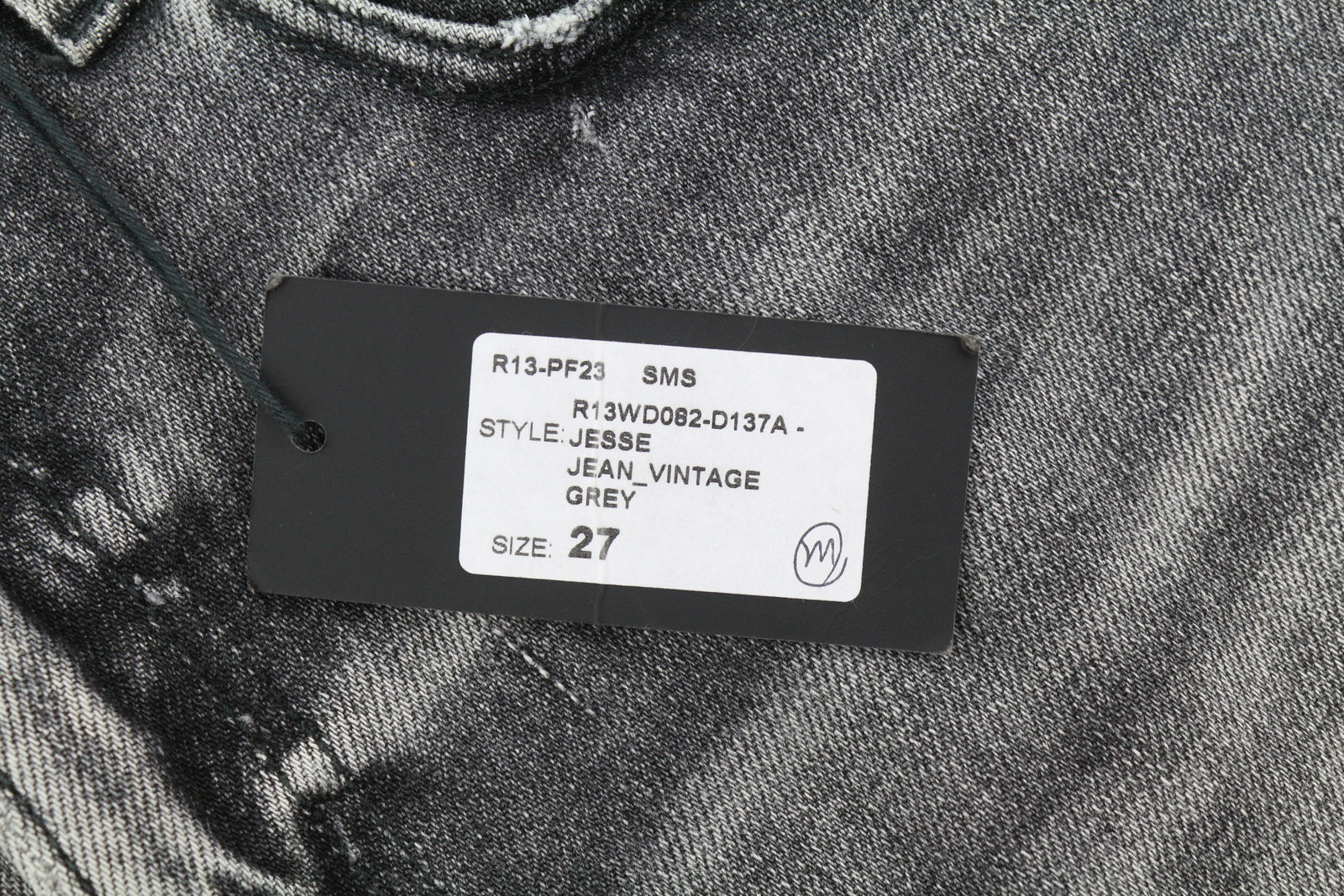 R13 Jesse Women Jeans 27 Vintage Grey Super Wide Leg Drop Crotch Faded RRP€725