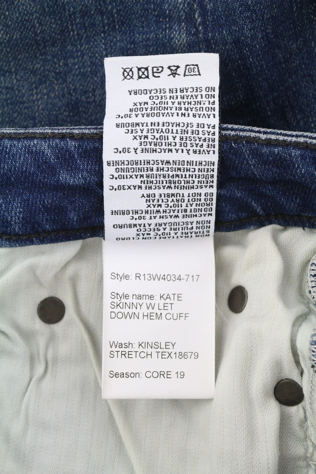 R13 Kate Skinny Let Down Hem Cuff Women Jeans 27 Kinsley Stretch Tex Faded Blue