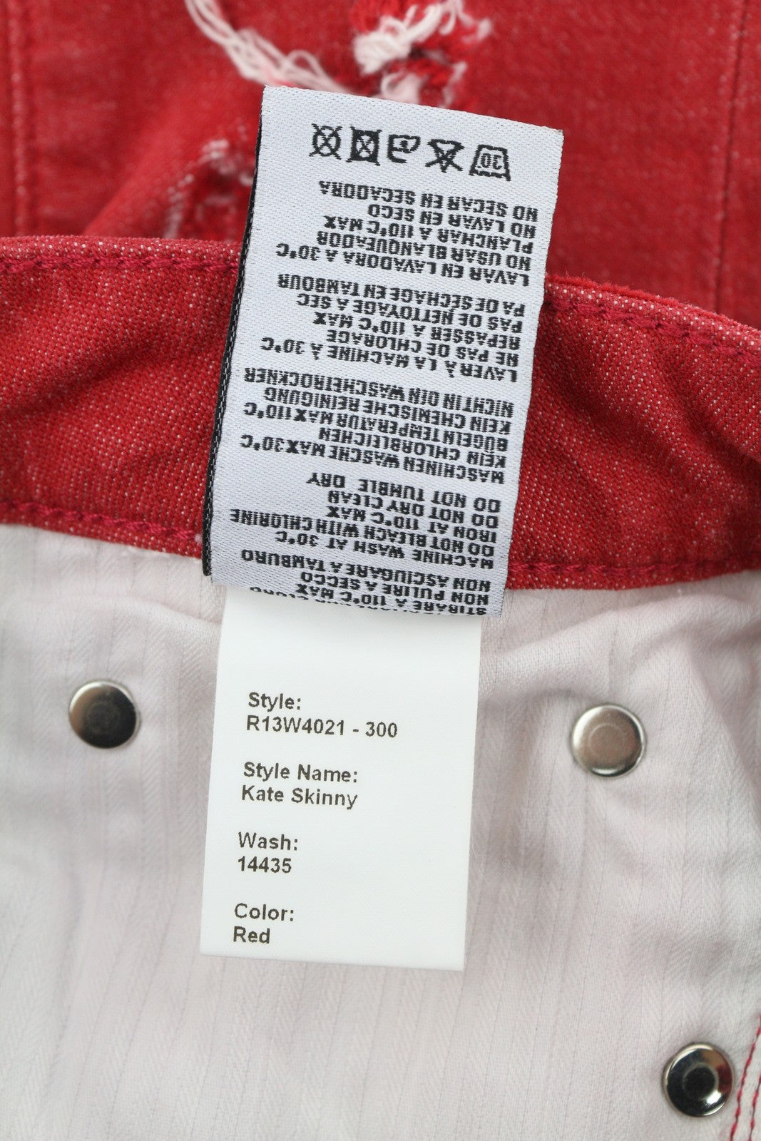 R13 Kate Skinny Women Jeans 24 Red Distressed Ripped Ankle Denim