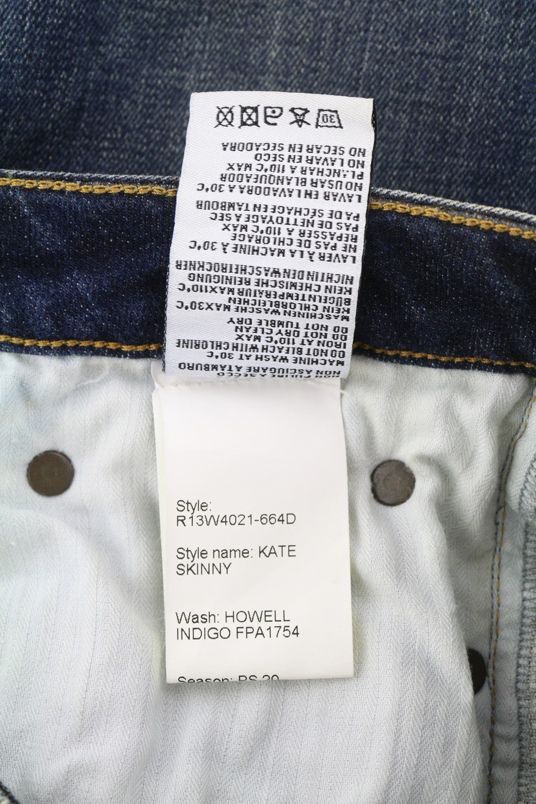 R13 Kate Women Jeans 27 Skinny Fit Ankle Length Zip Fly Faded Washed Dark Blue