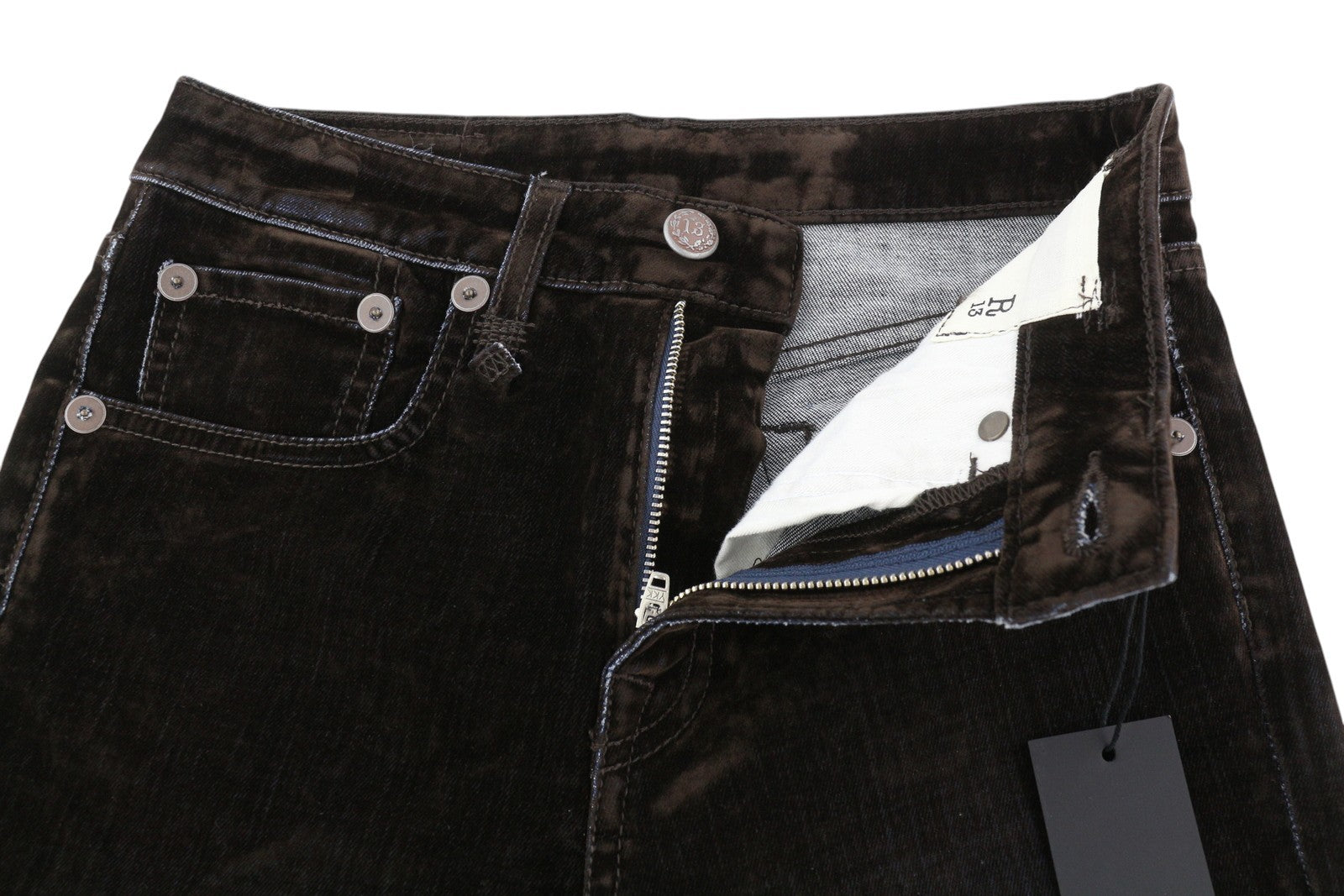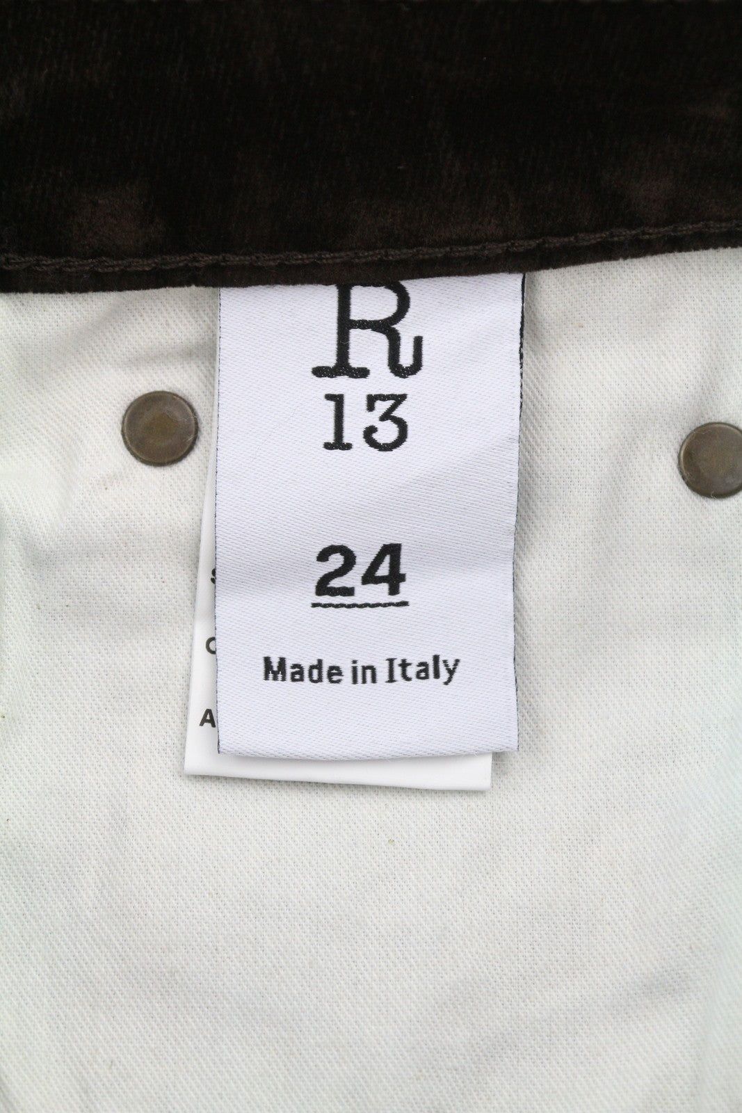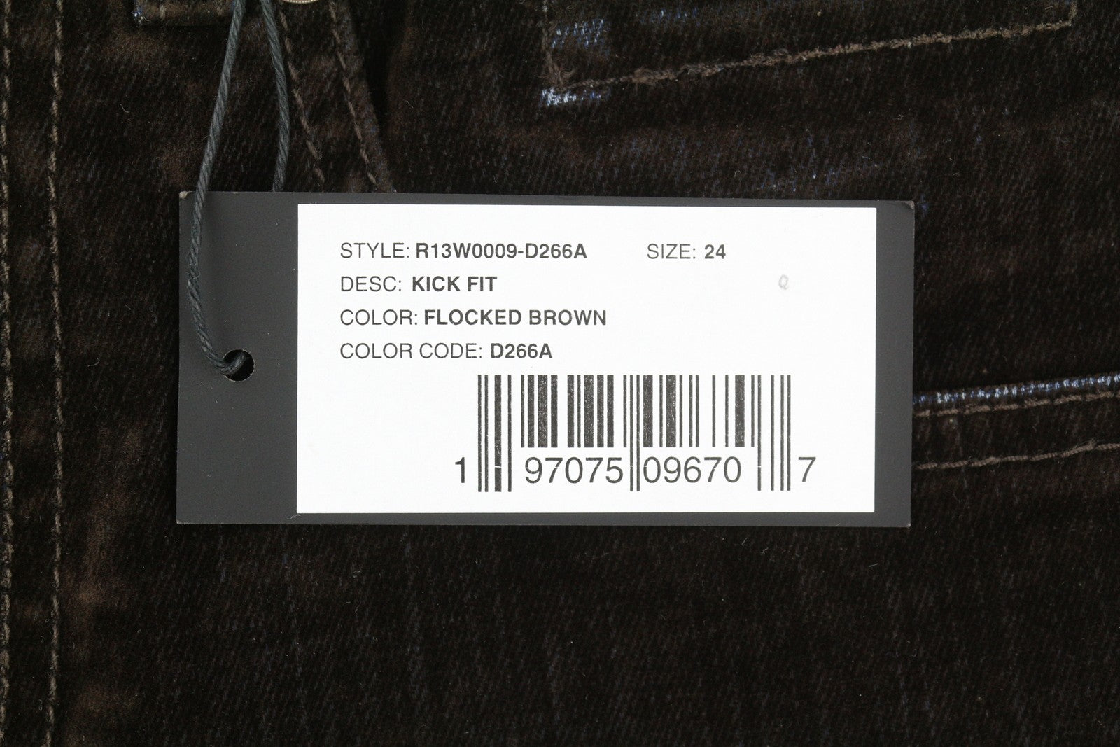 R13 Kick Fit Women Jeans 24 Brown Velvet Flocked Low Rise Cropped Ankle