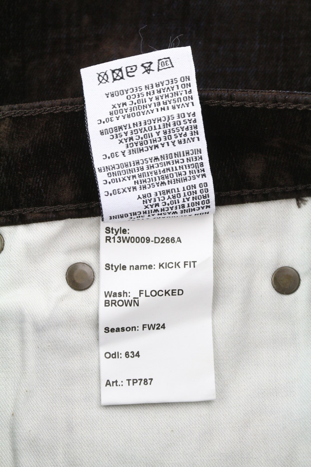 R13 Kick Fit Women Jeans 24 Flocked Brown Velvet Cropped Ankle Length Low Rise