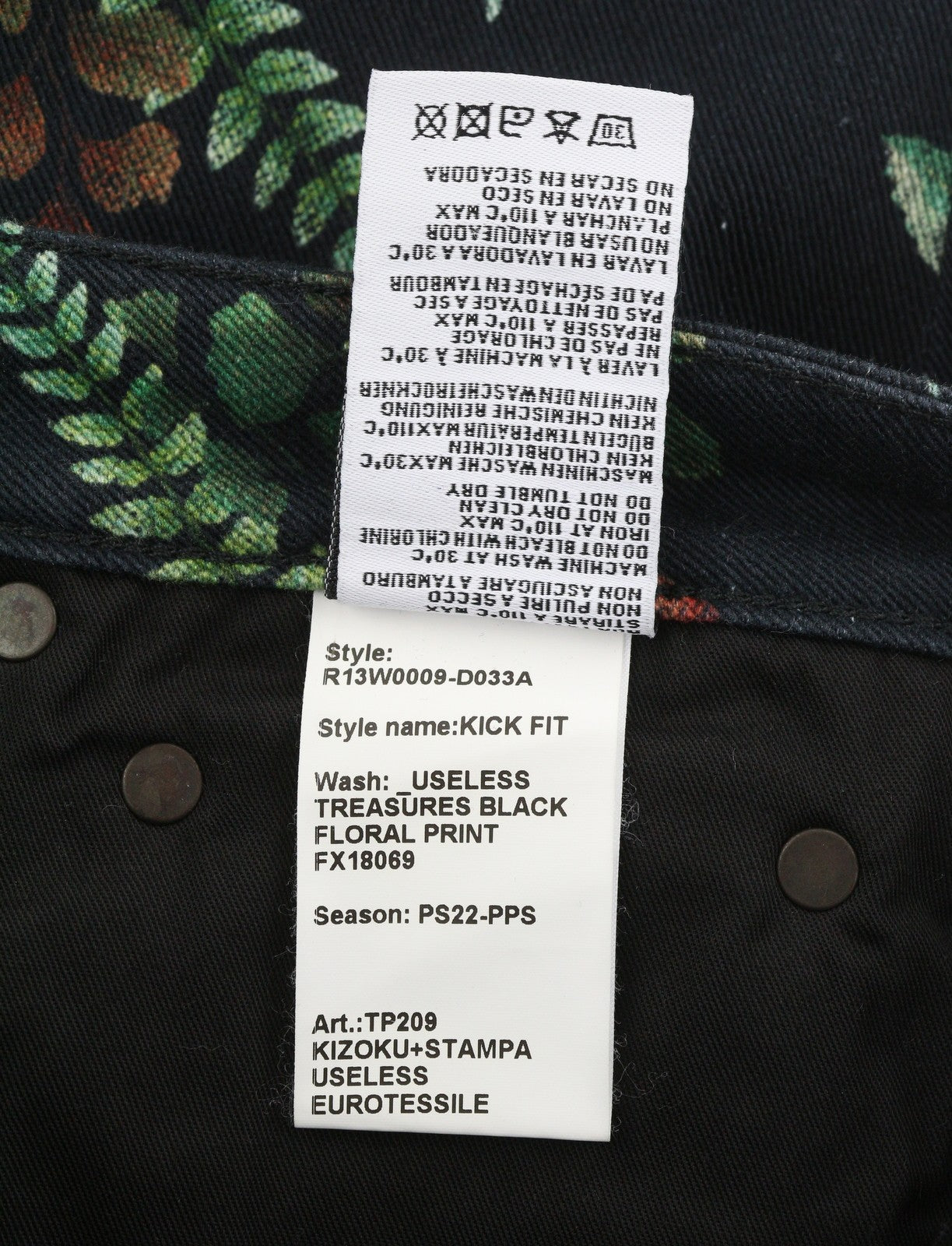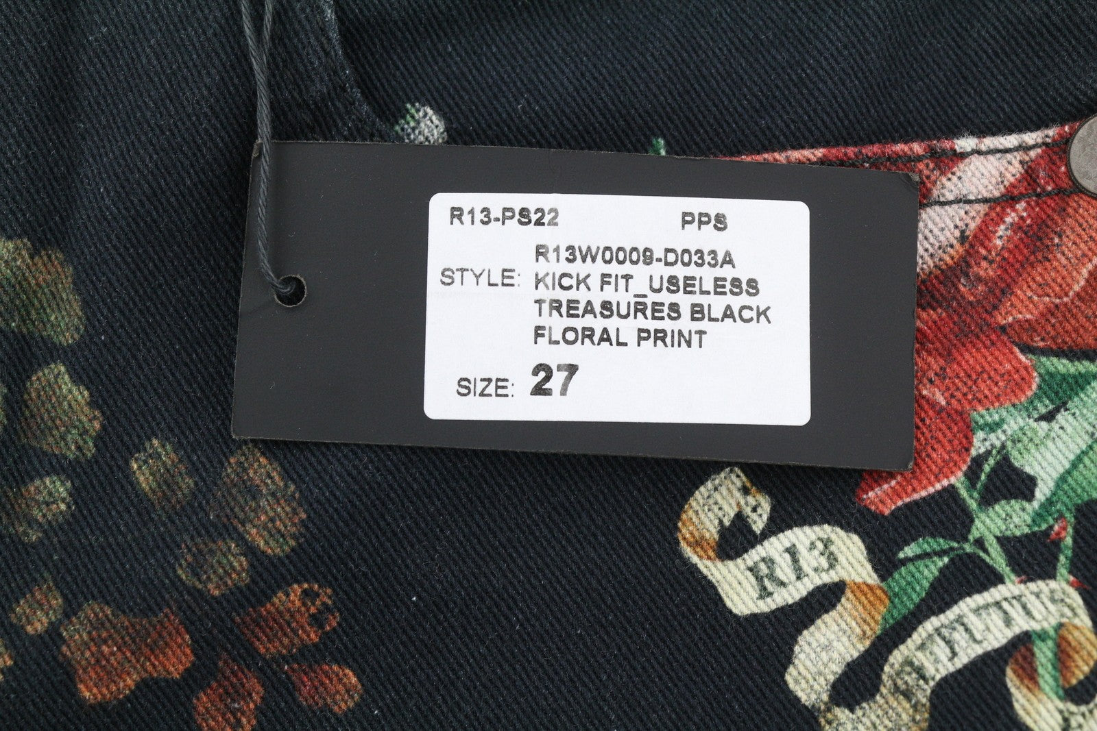 R13 Kick Fit Women Jeans 27 Useless Treasueres Black Floral Print Ankle Cropped