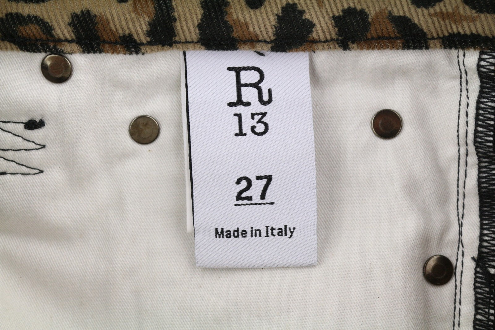 R13 Kick Fit Women Trousers 27 Tan Leopard Skinny Flared Cut Ankle Length Brown