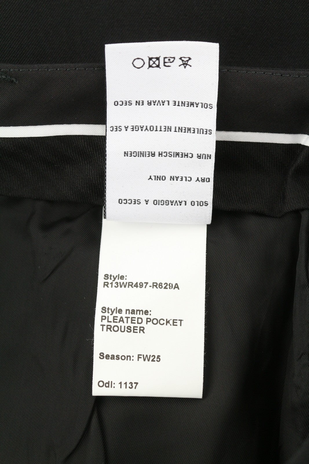 R13 Pleated Pocket Women Trousers 27 Black Wool Straight Fit Button Fly FW25