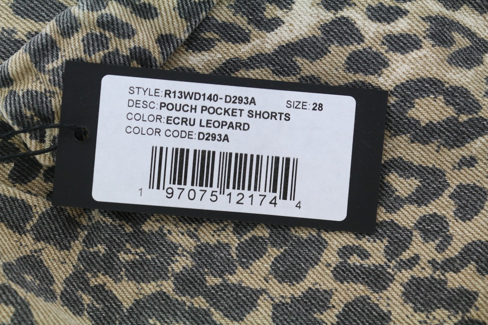 R13 Pouch Pocket Women Shorts 28 Rigid Denim Leopard Print Folded Hem RRP795