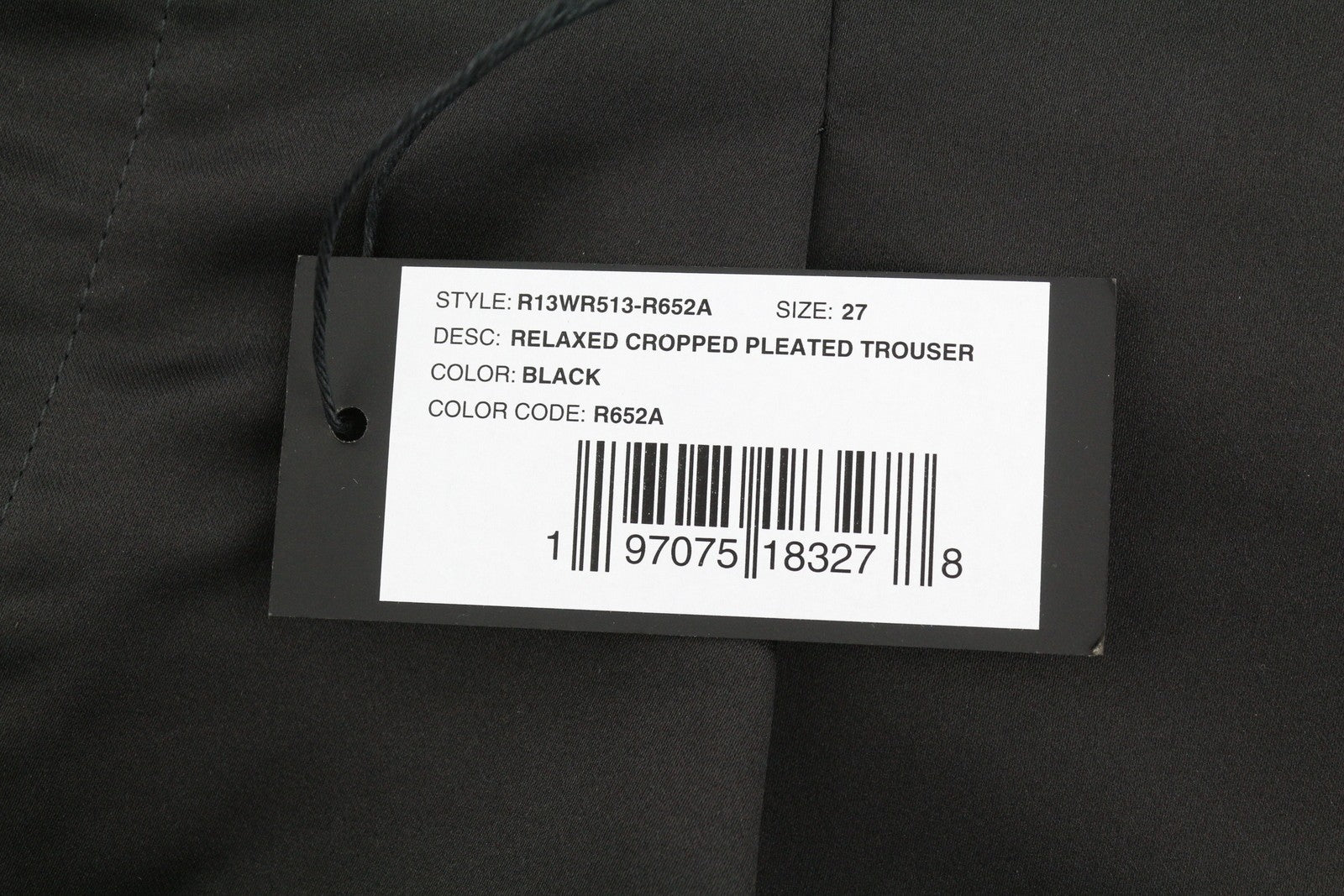 R13 Relaxed Cropped Pleated Women Trousers 27 Black Satin FW25