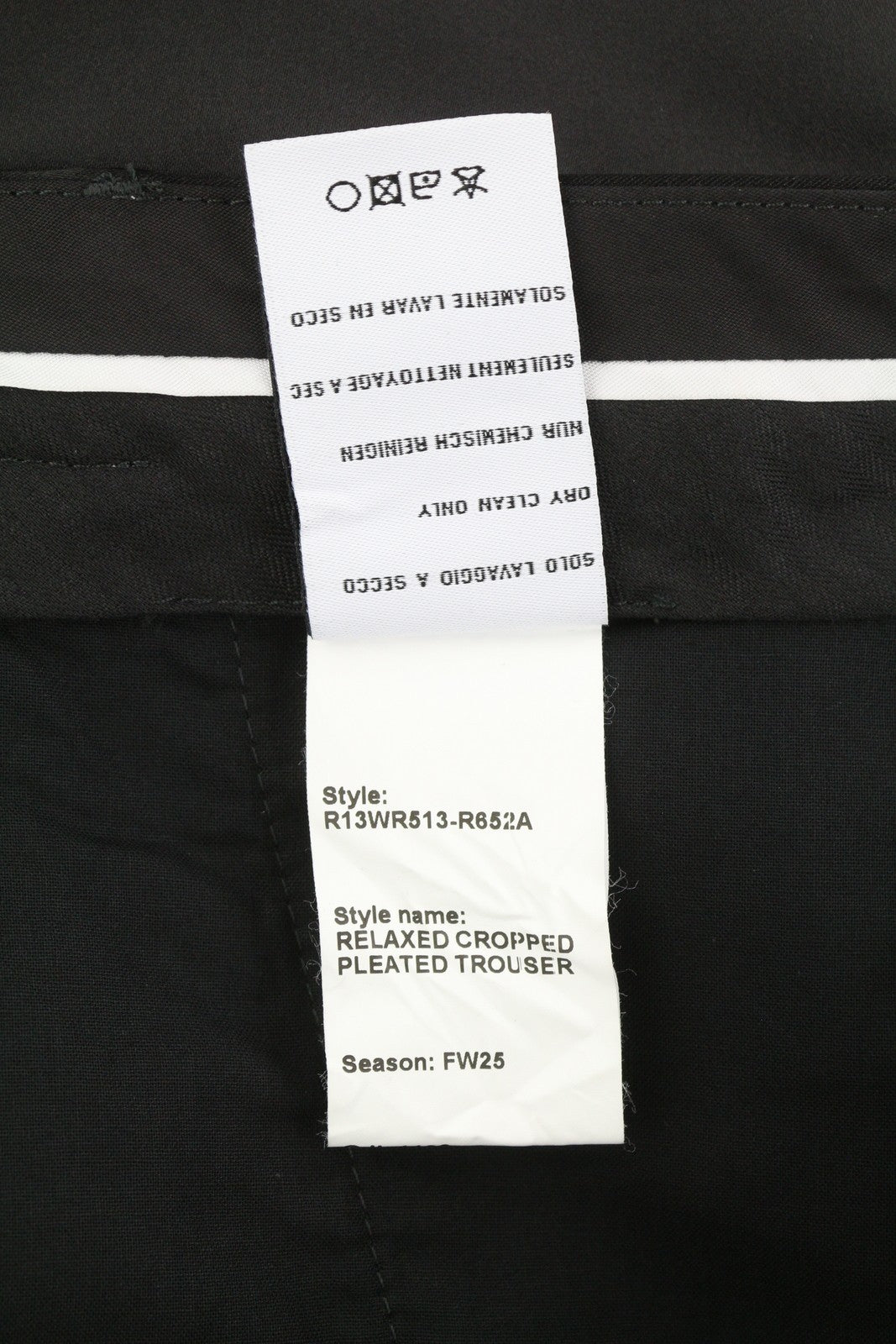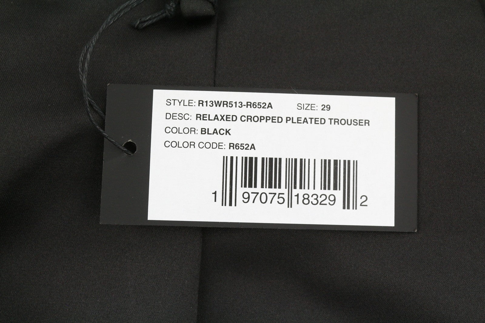 R13 Relaxed Cropped Pleated Women Trousers 29 Black Satin FW25