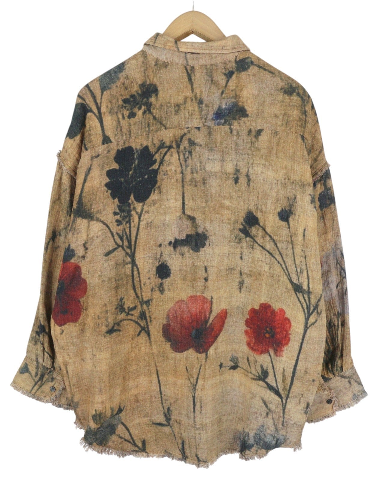 R13 Reversible Drop Neck Women Shirt S Plaid With Khaki Floral PF25 RRP1045