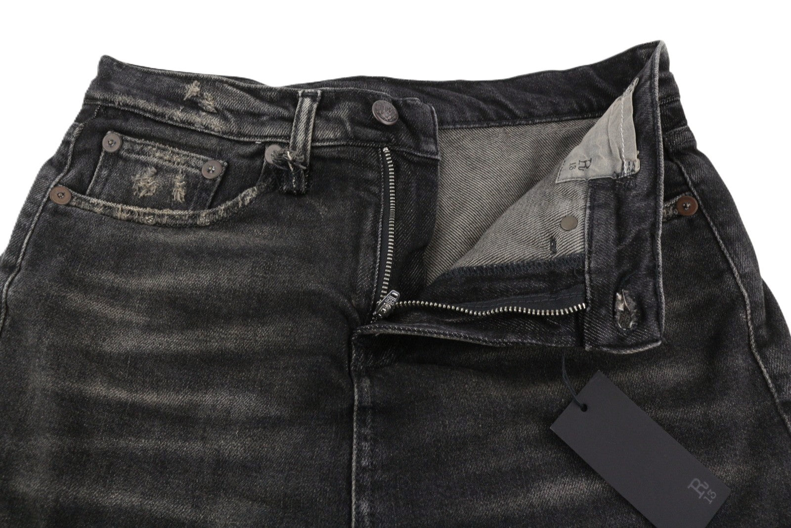 R13 Romeo Double Classic Women Jeans 26 Abbey Black Skirted Straight RRP750