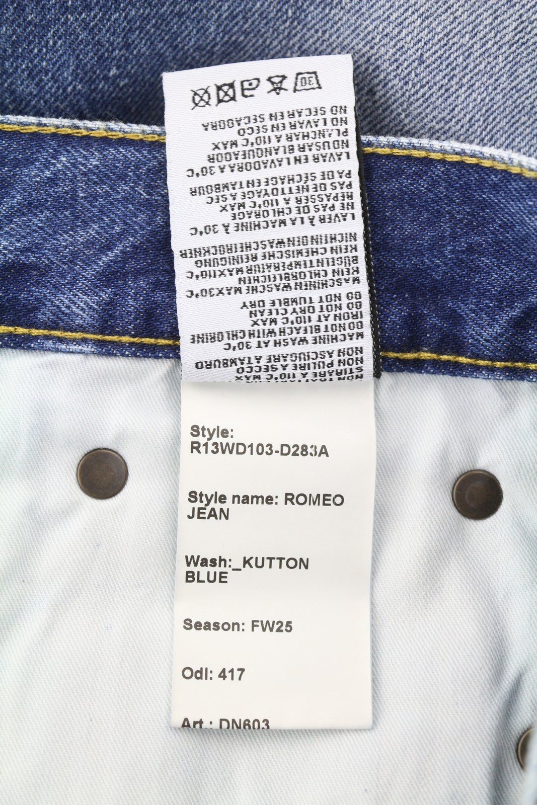 R13 Romeo Women Jeans 26 Hutton Blue Faded Denim Cropped Zip Fly FW25 RRP799