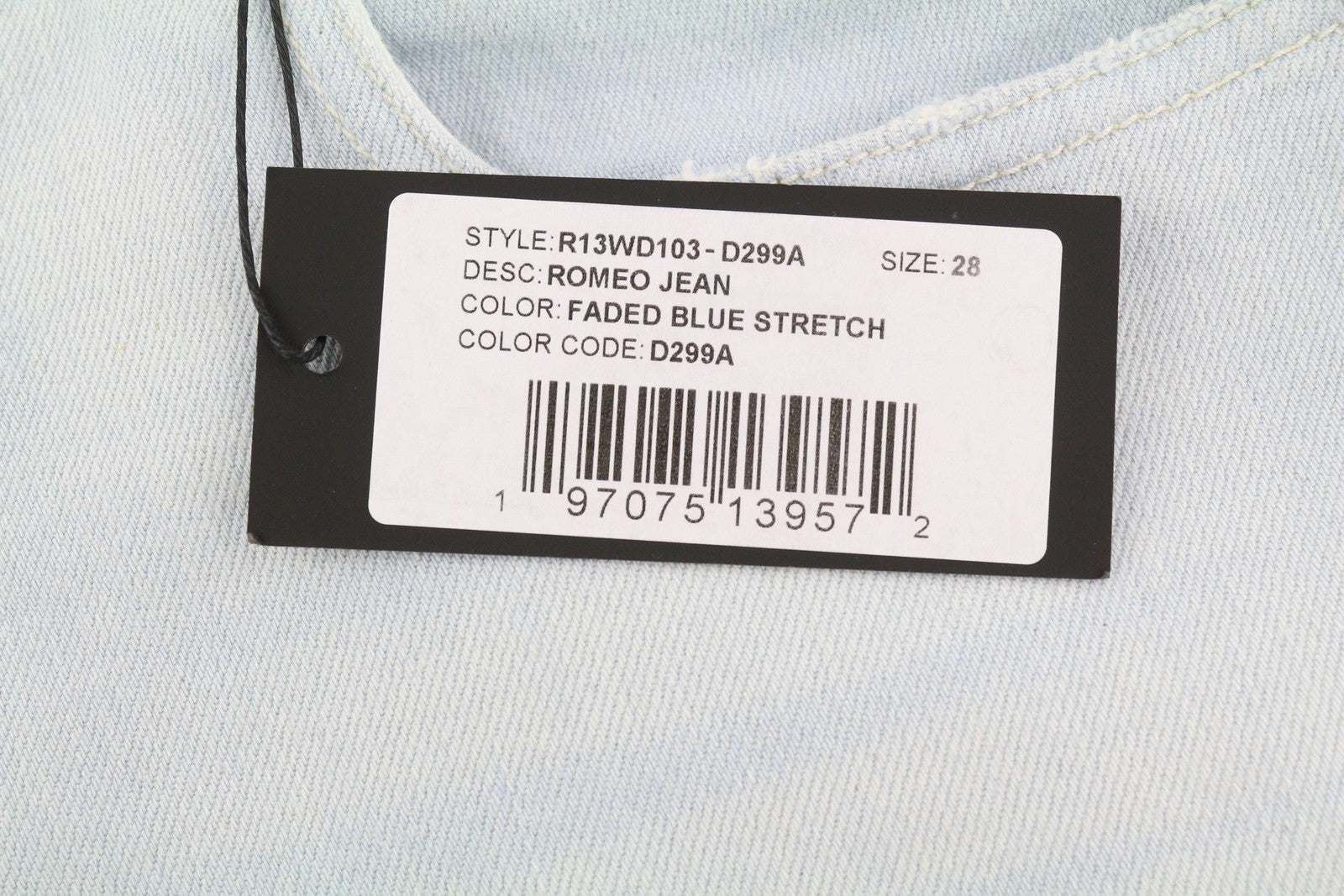R13 Romeo Women Jeans 28 Washed Blue Stretch Ankle Length Cropped Zip Fly Denim
