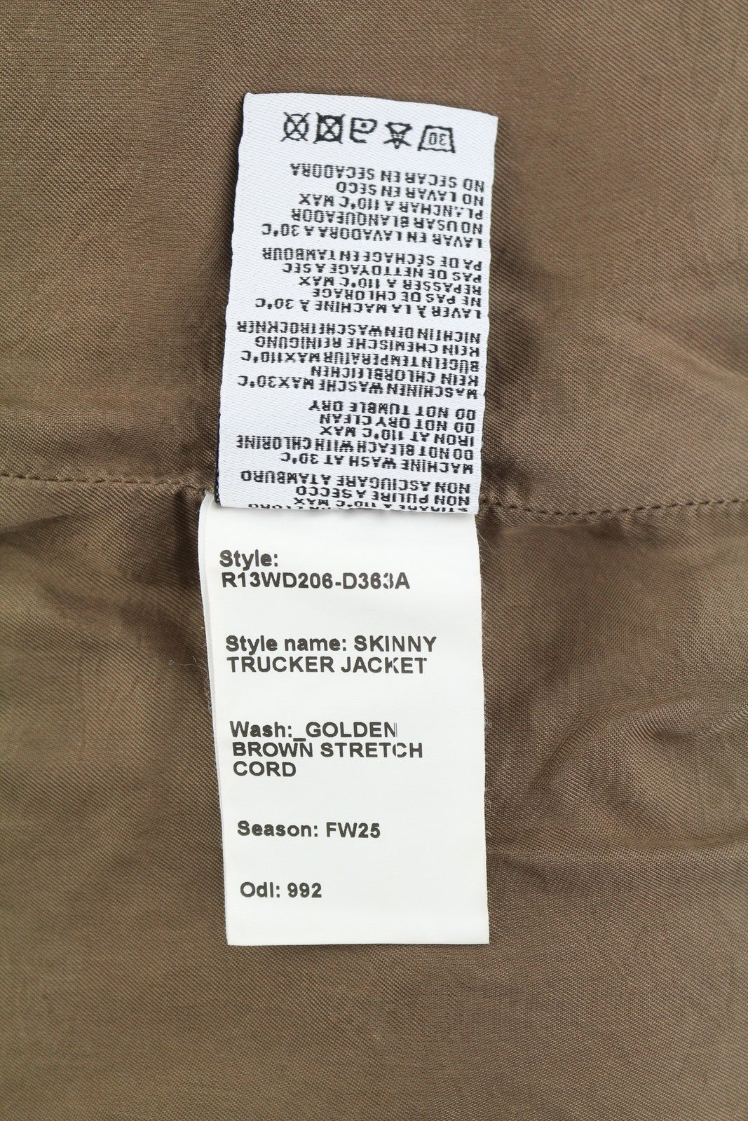 R13 Skinny Trucker Women Jacket M Golden Brown Stretch Cord Button FW25 RRP1199