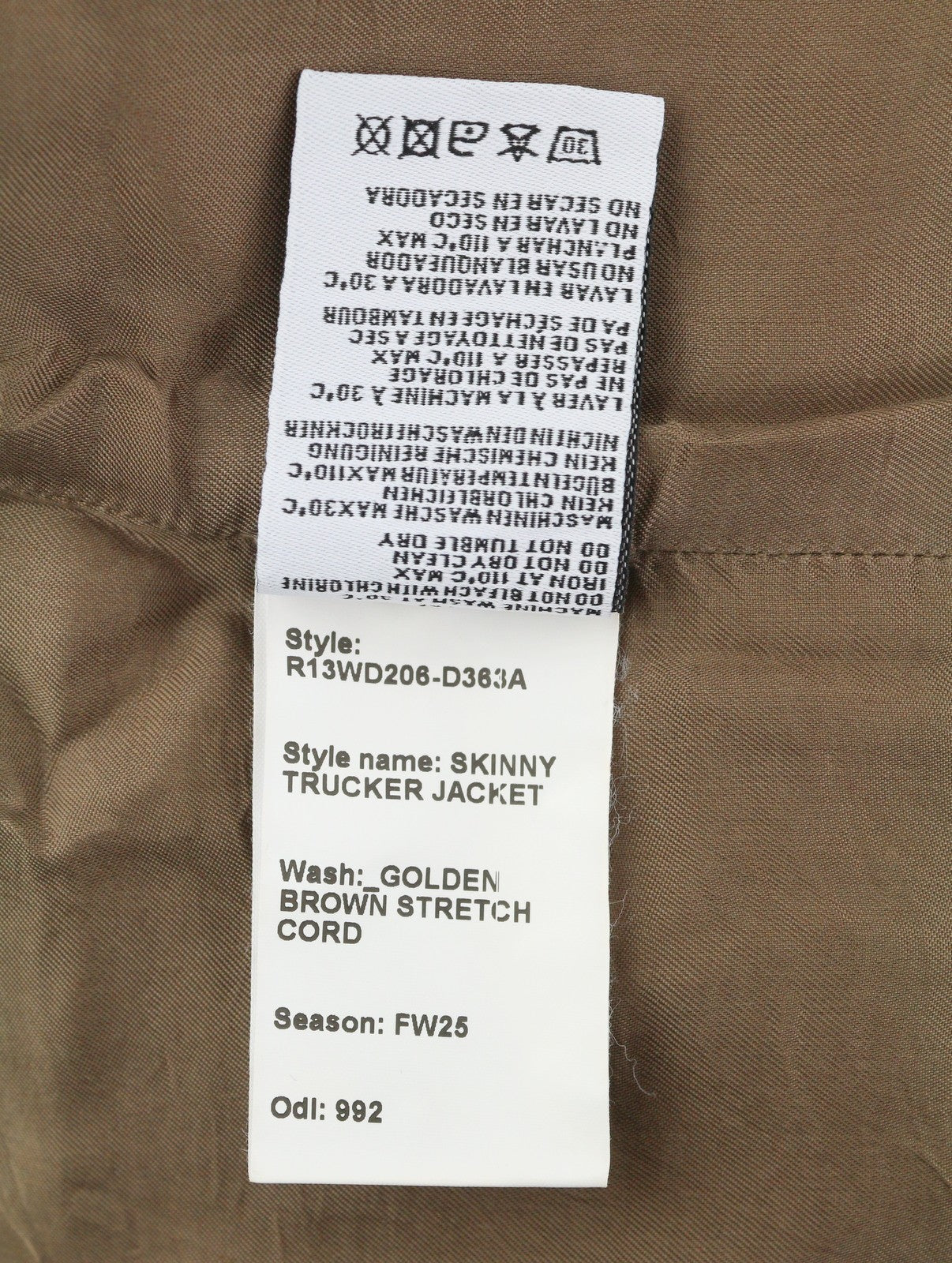 R13 Skinny Trucker Women Jacket S Golden Brown Stretch Cord Faded FW25 RRP1199