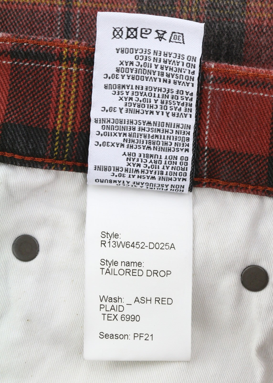 R13 Tailored Drop Women Trousers 27 Ash Red Plaid Ankle Cropped Relaxed RRP€710