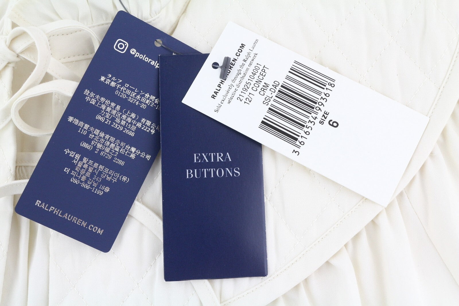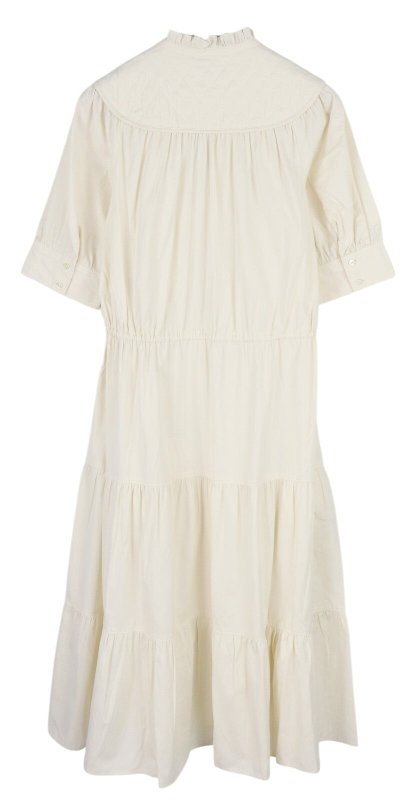 RALPH LAUREN Elia Women Dress S White 3/4 Sleeve Ruffle Collar Cotton Midi