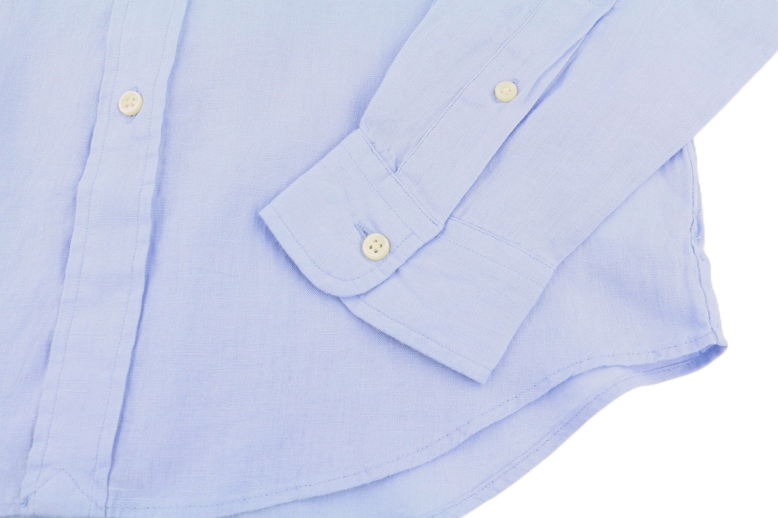 RALPH LAUREN Men Shirt S Blue Linen Custom Fit Button-Down Neck Logo RRP169