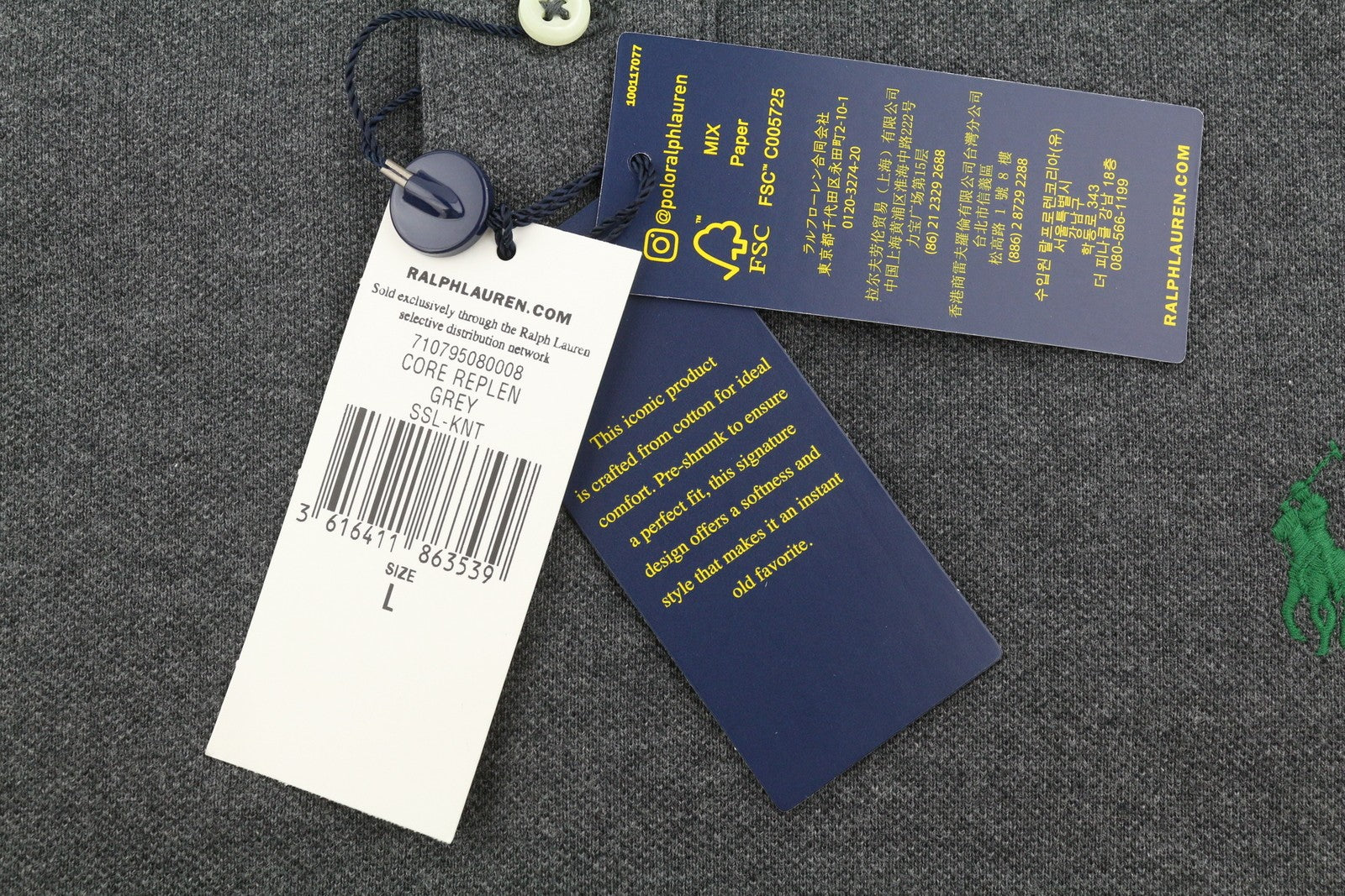 RALPH LAUREN Slim Fit Men Polos L Dark Grey Melange Cotton Logo Short Sleeve