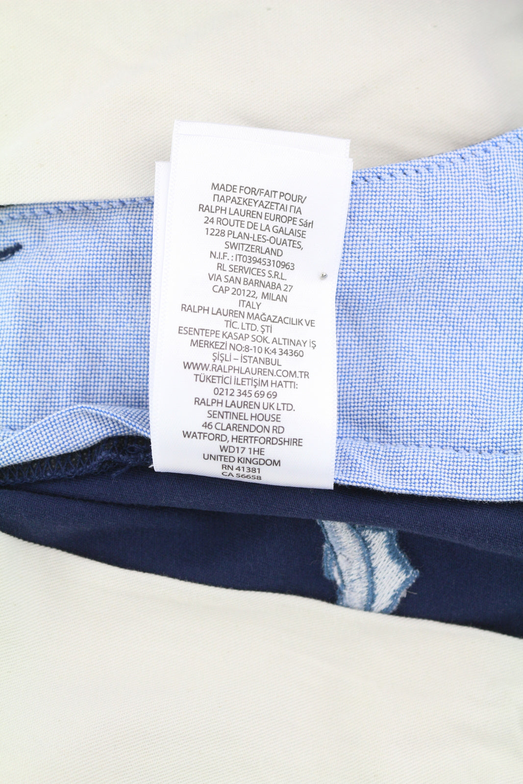 RALPH LAUREN Stretch Straight Fit Men Shorts 31 Dark Blue Chino Embroidered