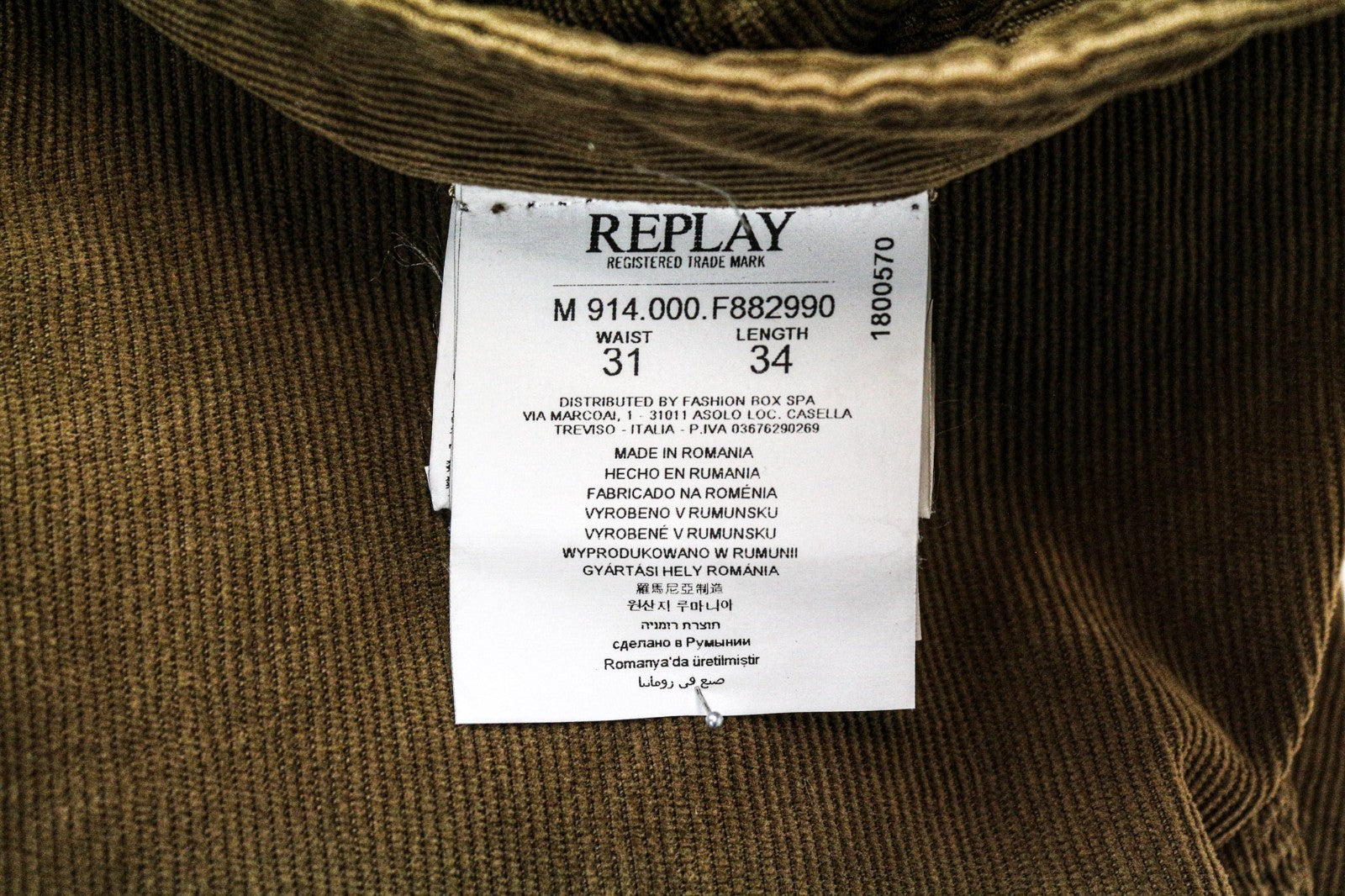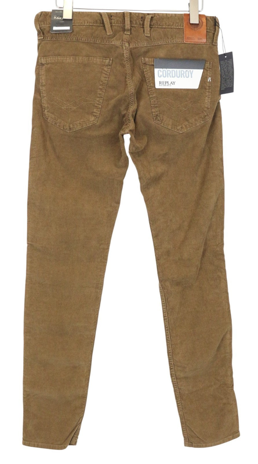 REPLAY Anbass Men's Corduroy W31/L34 Brown Slim Fit Cotton Stretch Trousers