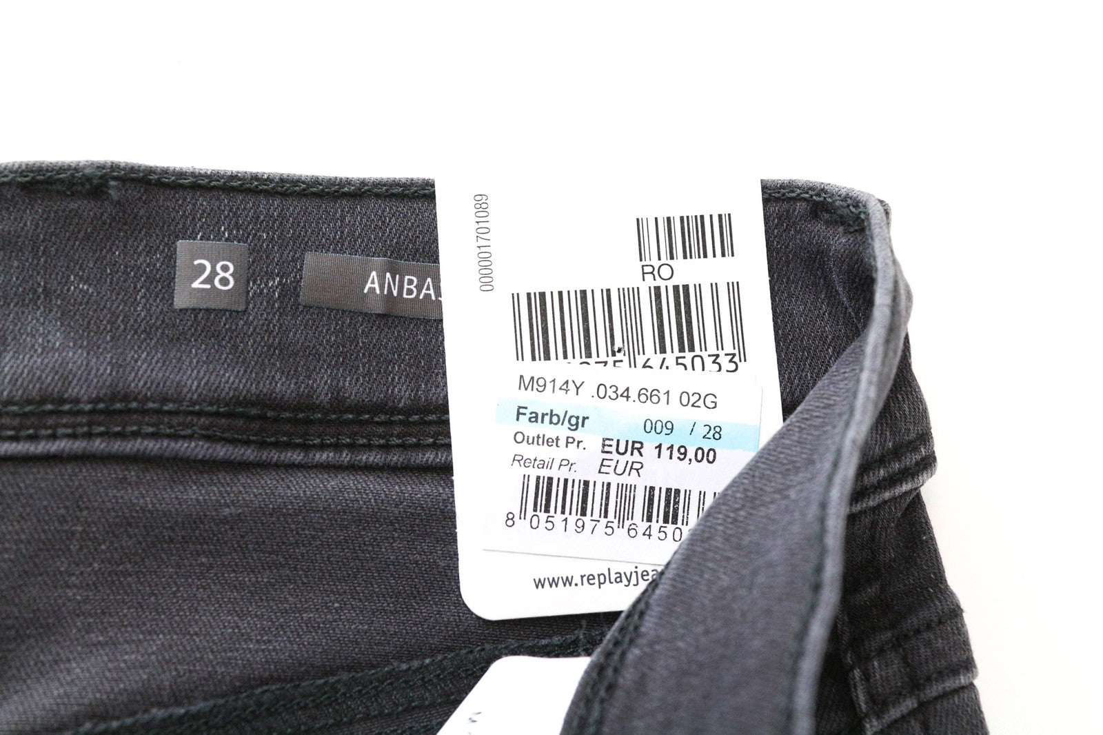 REPLAY Anbass Men's Jeans W28/L34 Slim Grey Cotton Blend Stretch Ripped Wash