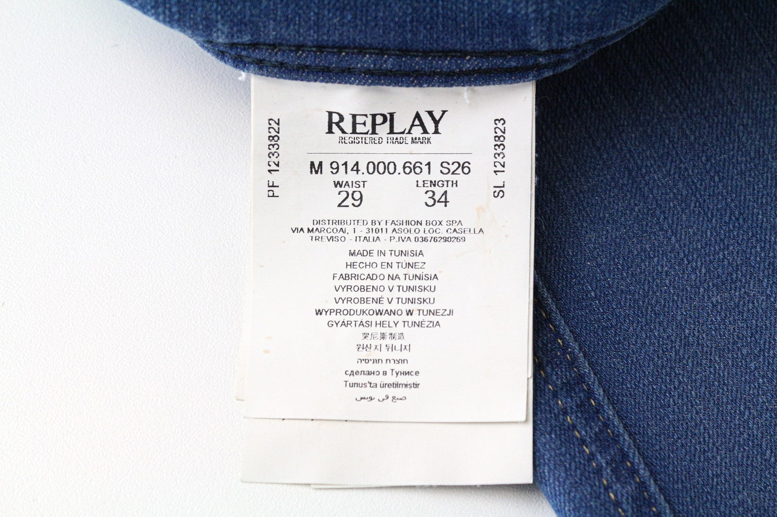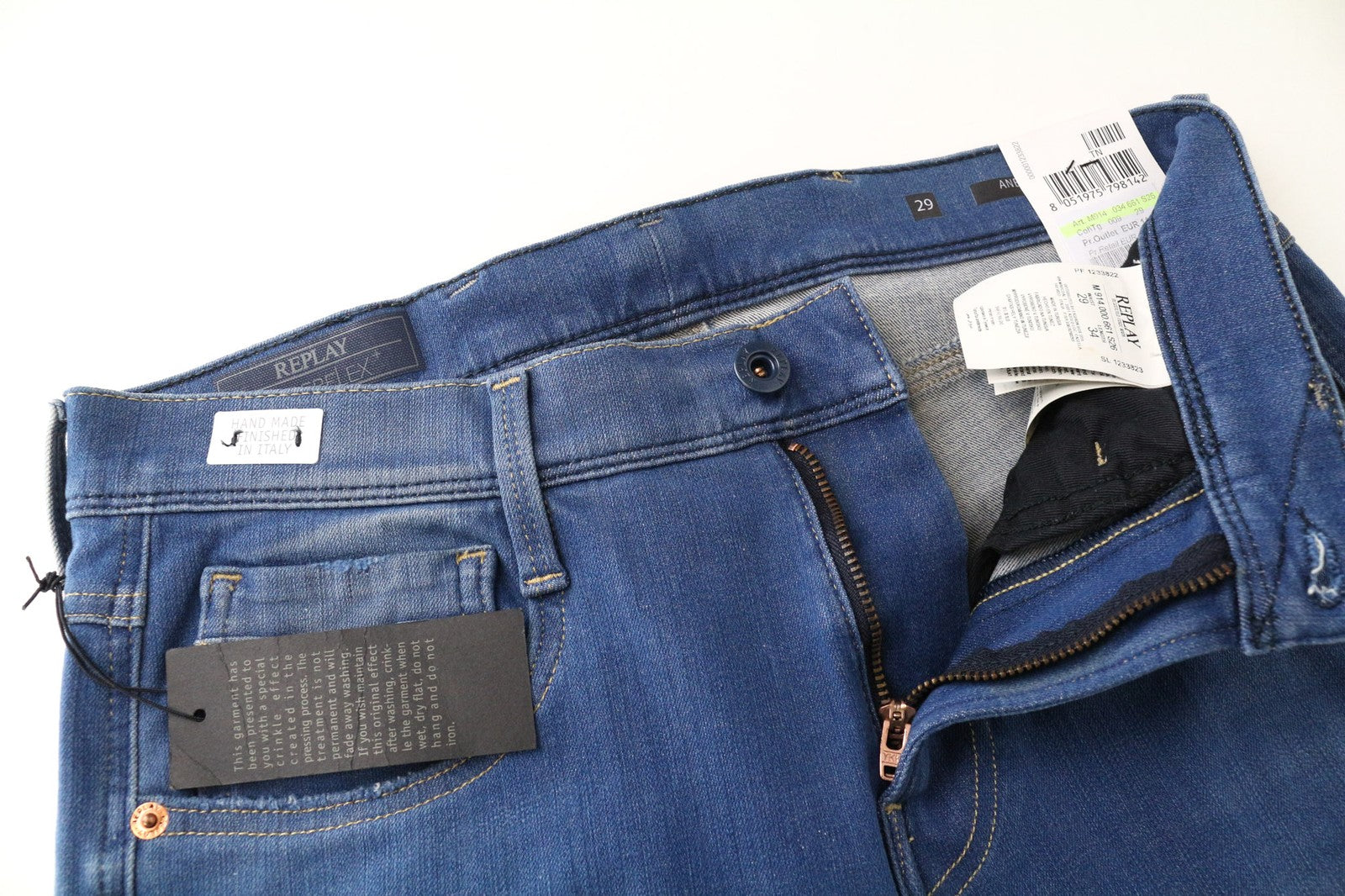 REPLAY Anbass Men's Jeans W29/L34 Mid Blue Slim Hyperflex+ Zipper Stretch Denim
