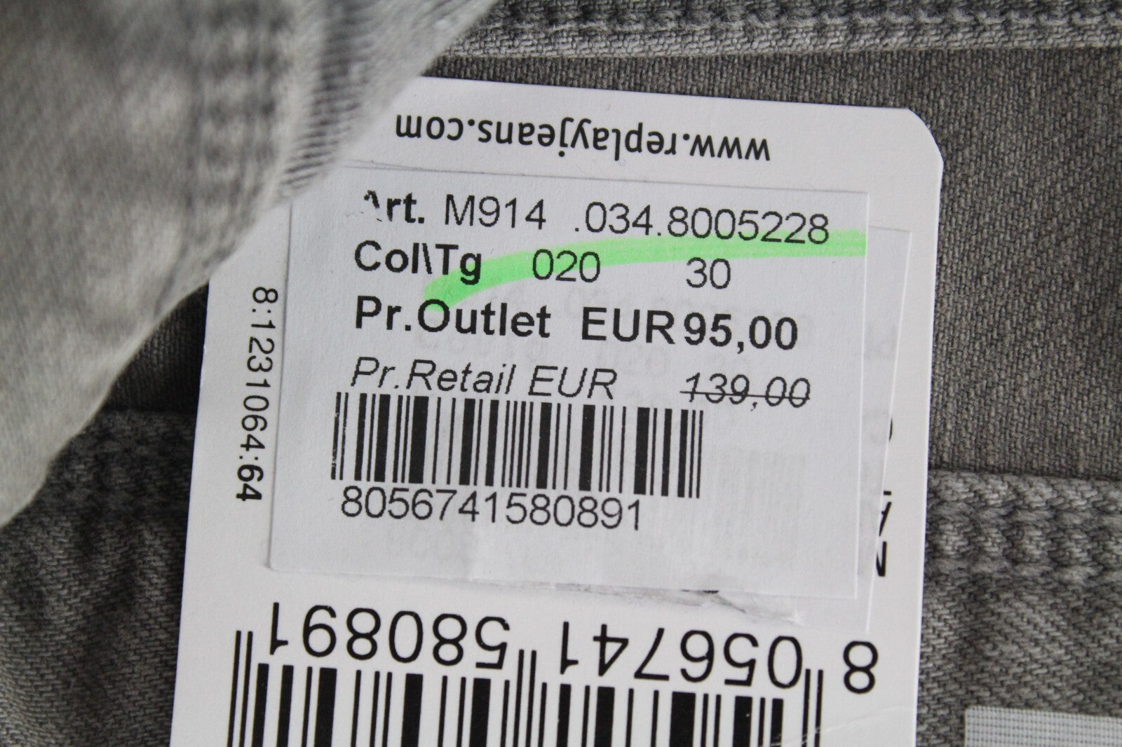 REPLAY Anbass Mens Jeans W30/L34 Grey Slim Cotton Denim Washed 5-Pocket