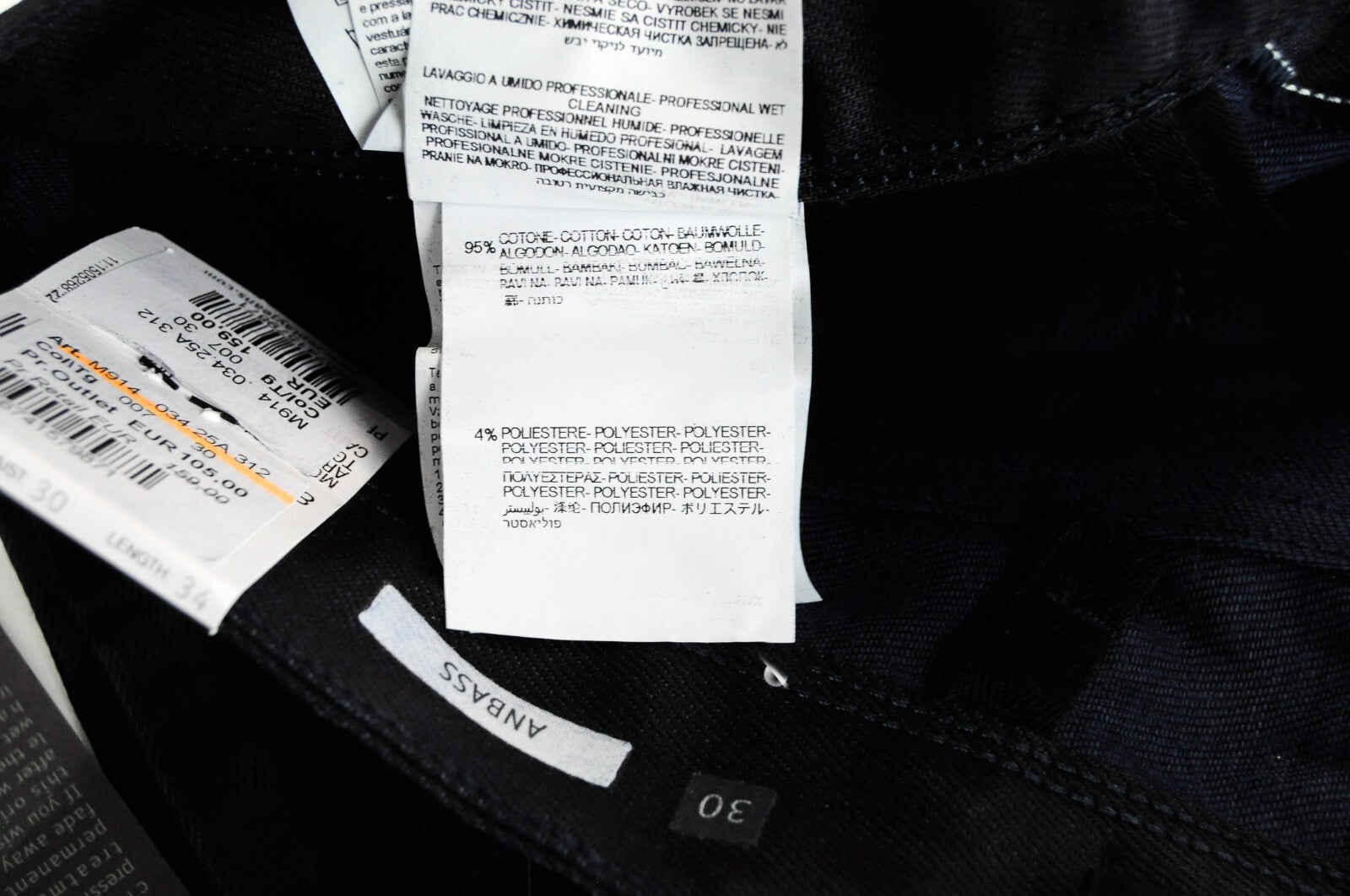 REPLAY Anbass Mens Jeans W30/L34 Navy Coated Slim  Stretchy Cotton 5-Pocket