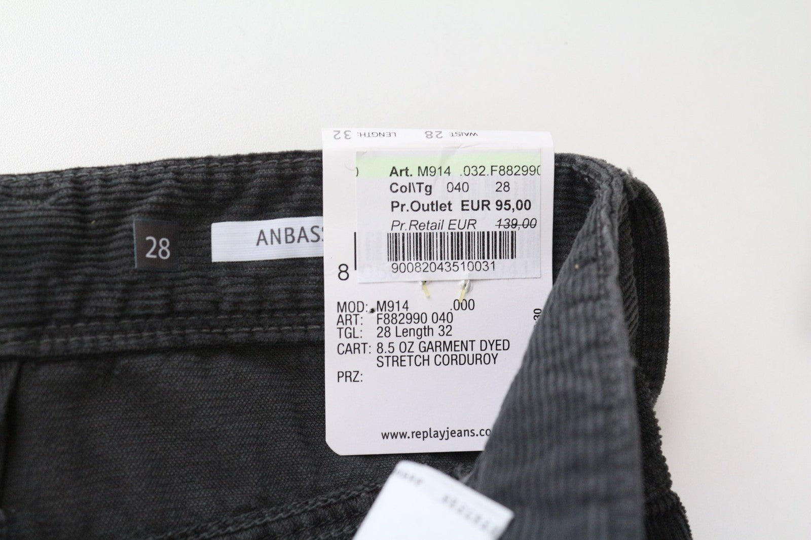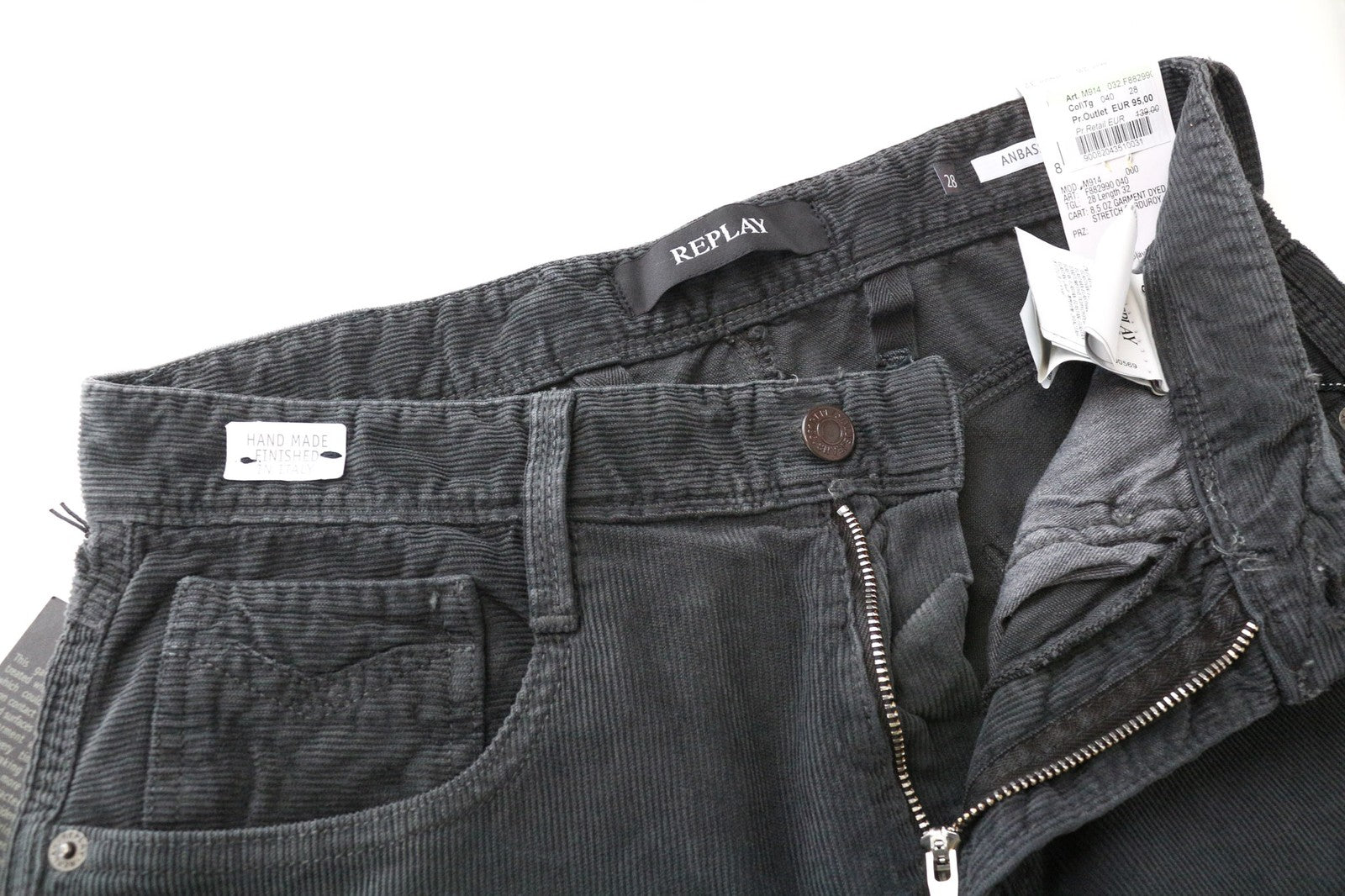 REPLAY Anbass Men's Trousers W28/L32 Grey Slim Cotton Stretch Cord Casual