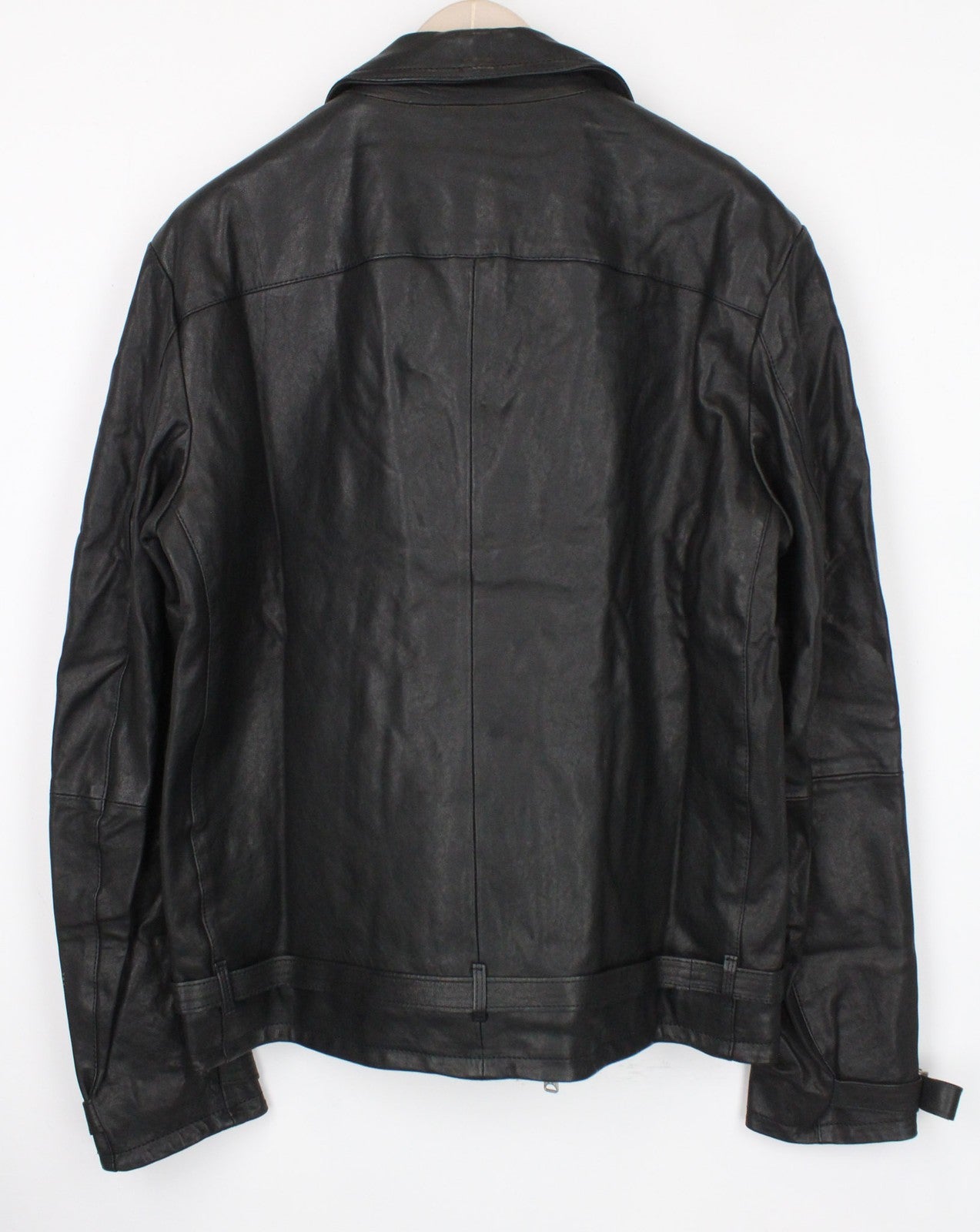 REPLAY Black Leather Jacket XL Men's Lined Biker Zip-Up Classic RRP499
