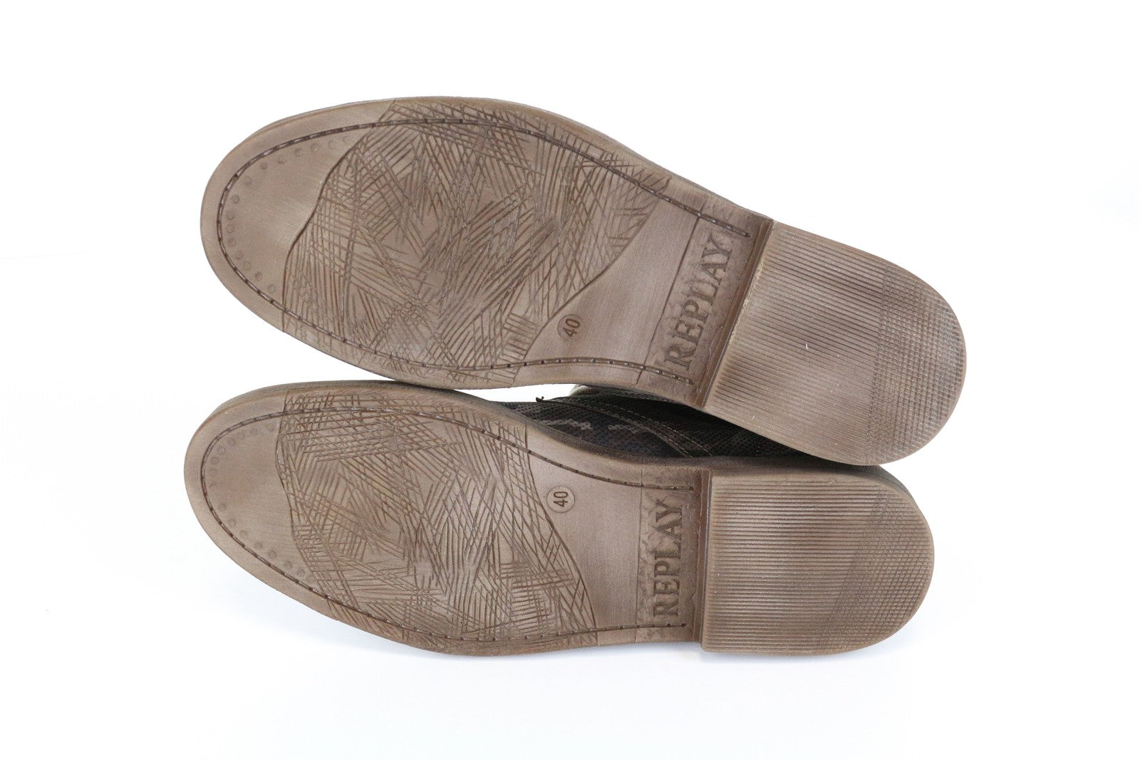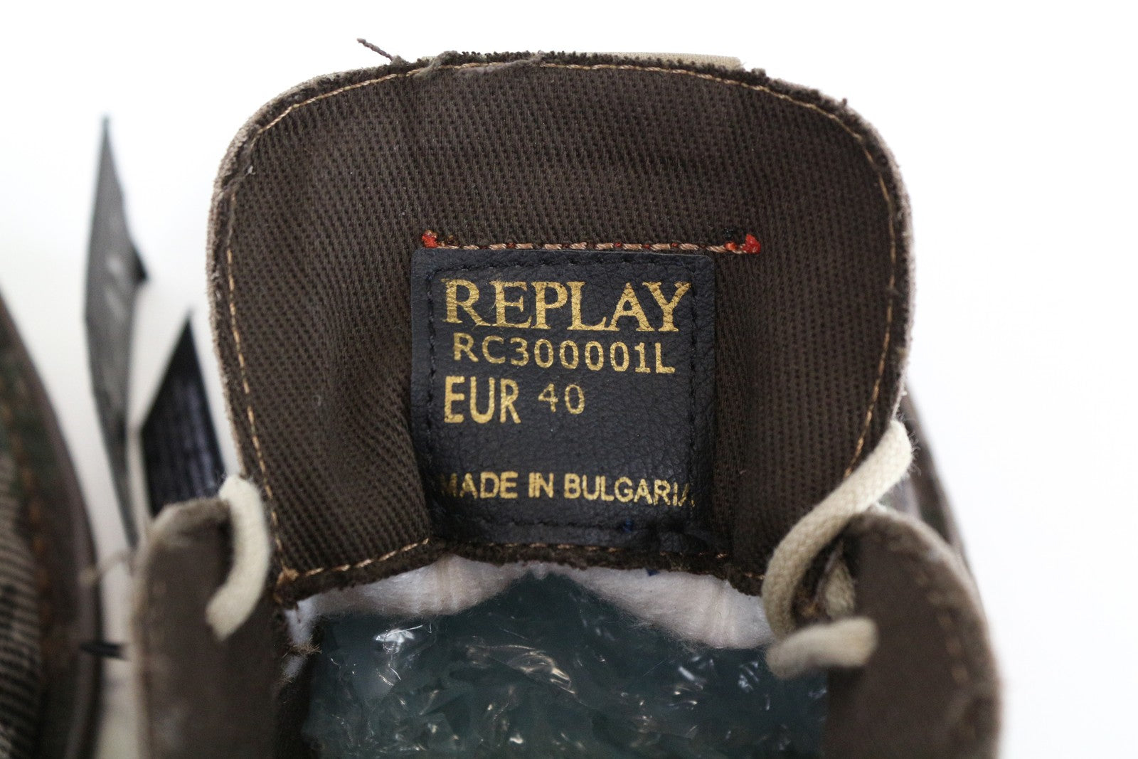 REPLAY EU40 Men's Military Shoes Brown Green Pattern High-Top Laced