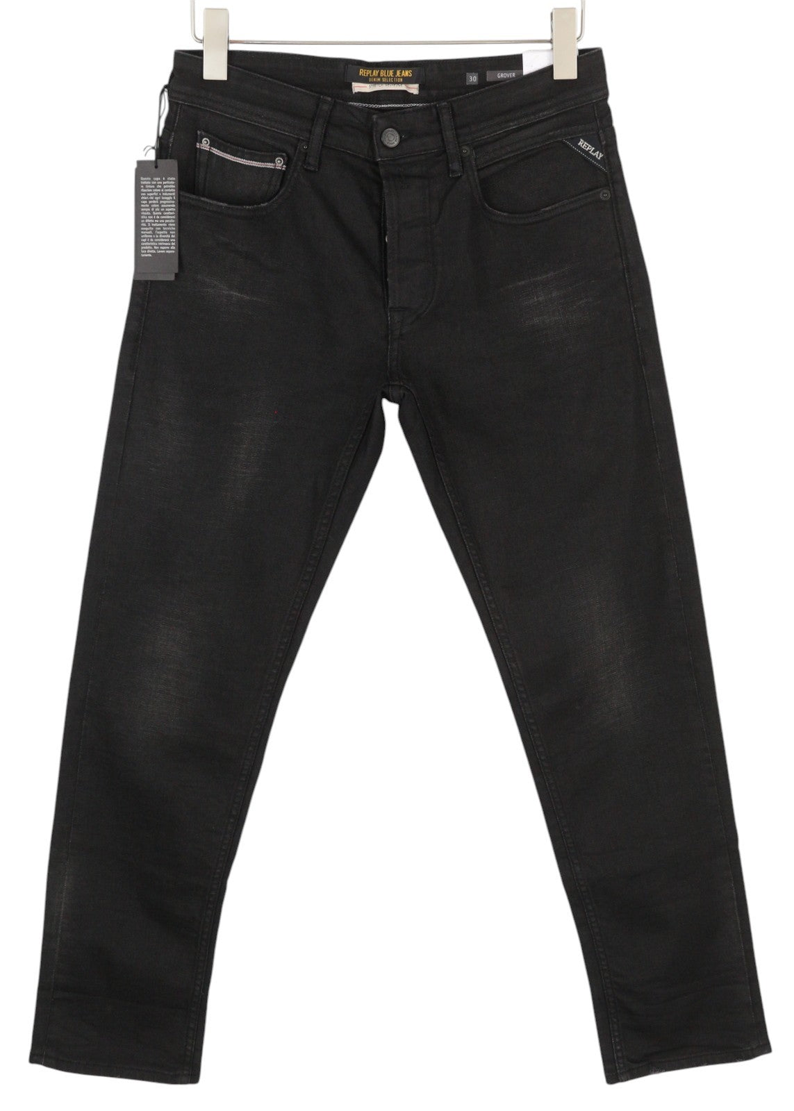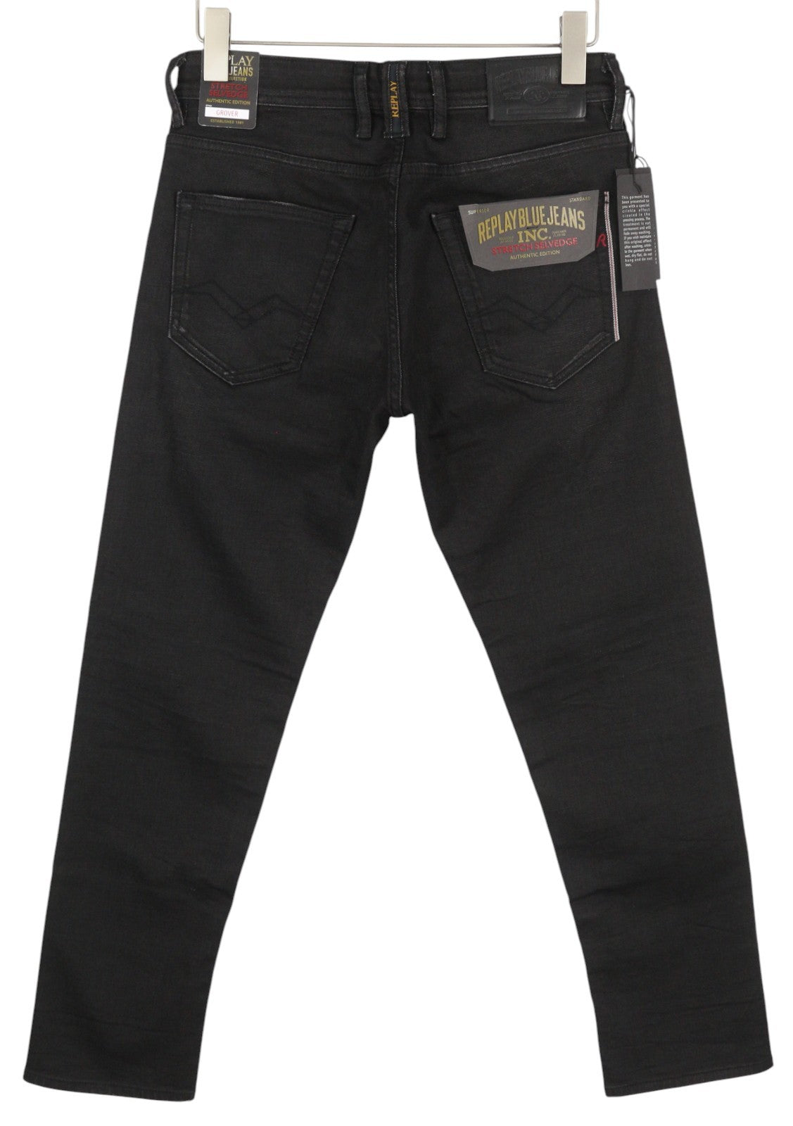 REPLAY Grover Men Jeans W30/L30 Black Selvedge Straight Fit Button Fly Dark