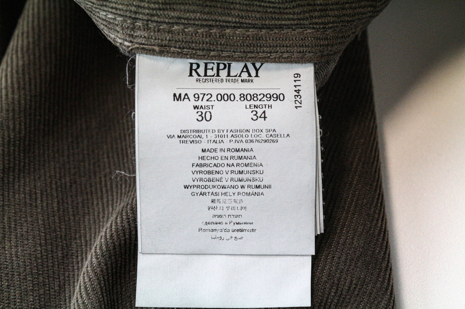 REPLAY Grover Men's Trousers W30/L34 Straight Corduroy Brown Grey Cotton Stretch