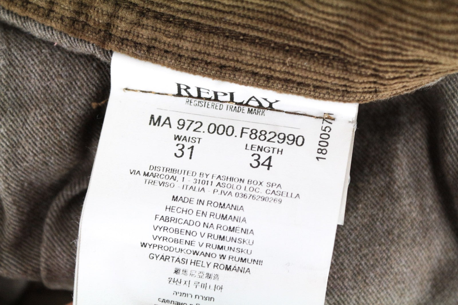 REPLAY Grover Men's Trousers W31/L34 Brown Straight Fit Corduroy