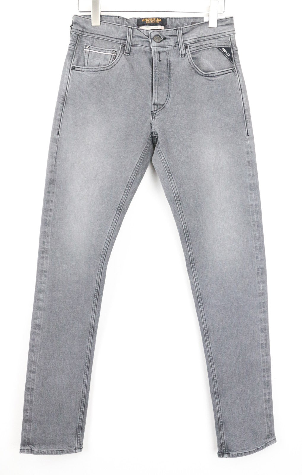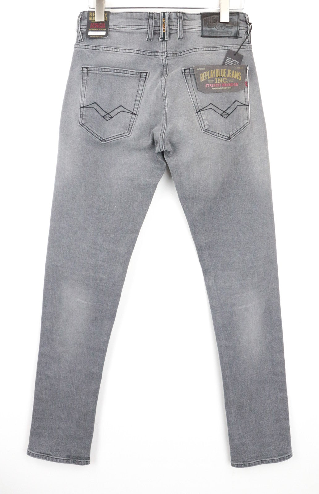 REPLAY Grover Men's W29/L34 Grey Selvedge Straight Jeans Stretch Button Fly