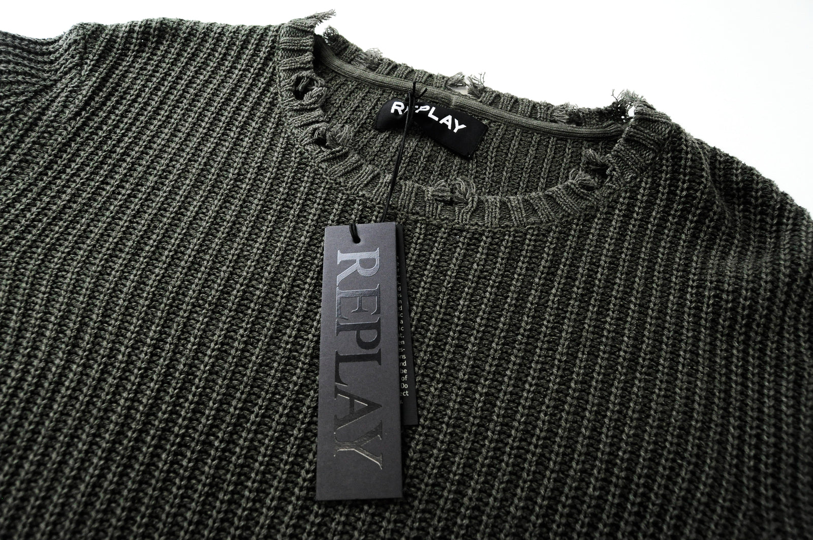 REPLAY Men 2XL Green Jumper Long Sleeve Knitted Cotton Sweater Round Neck
