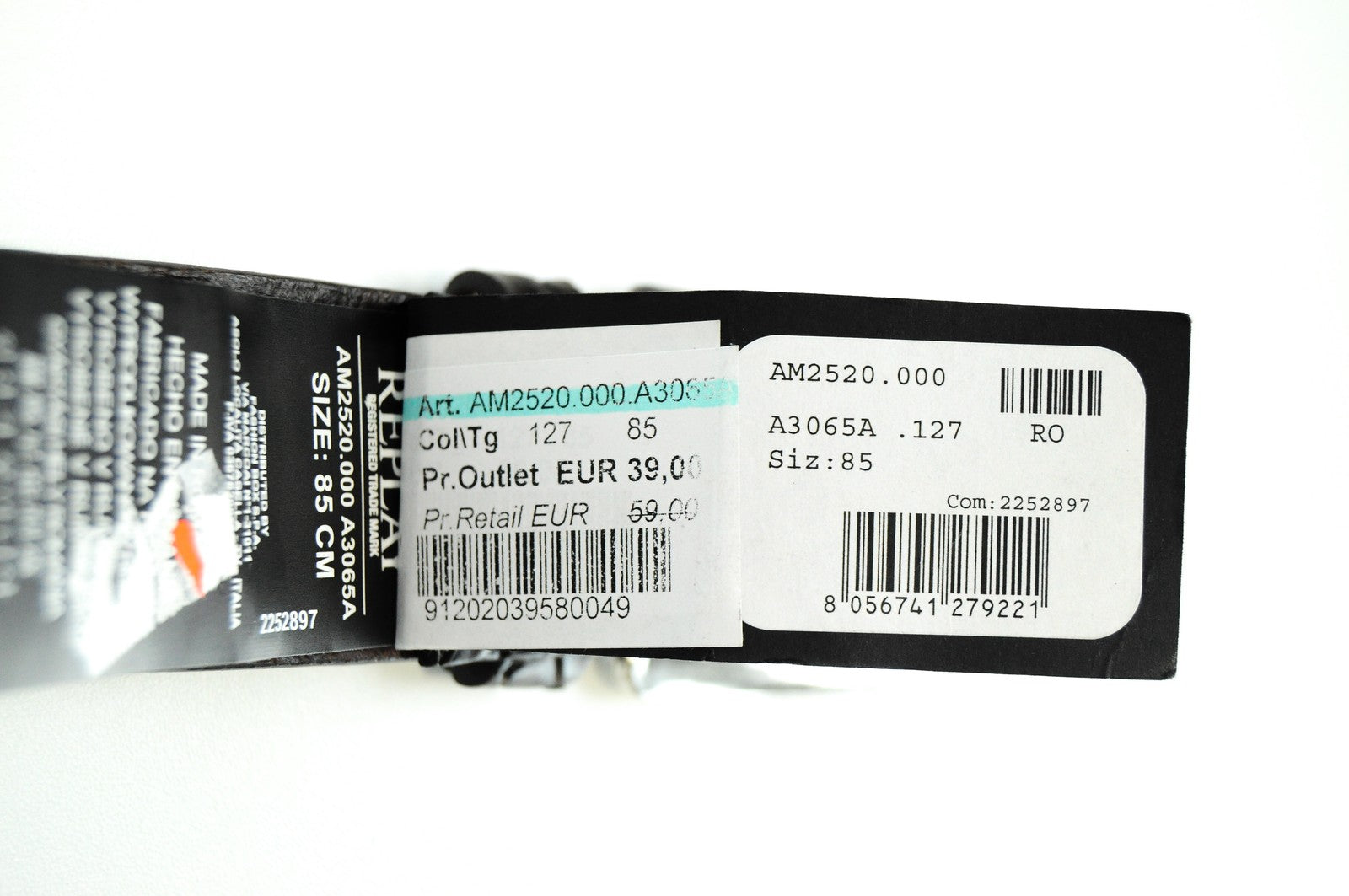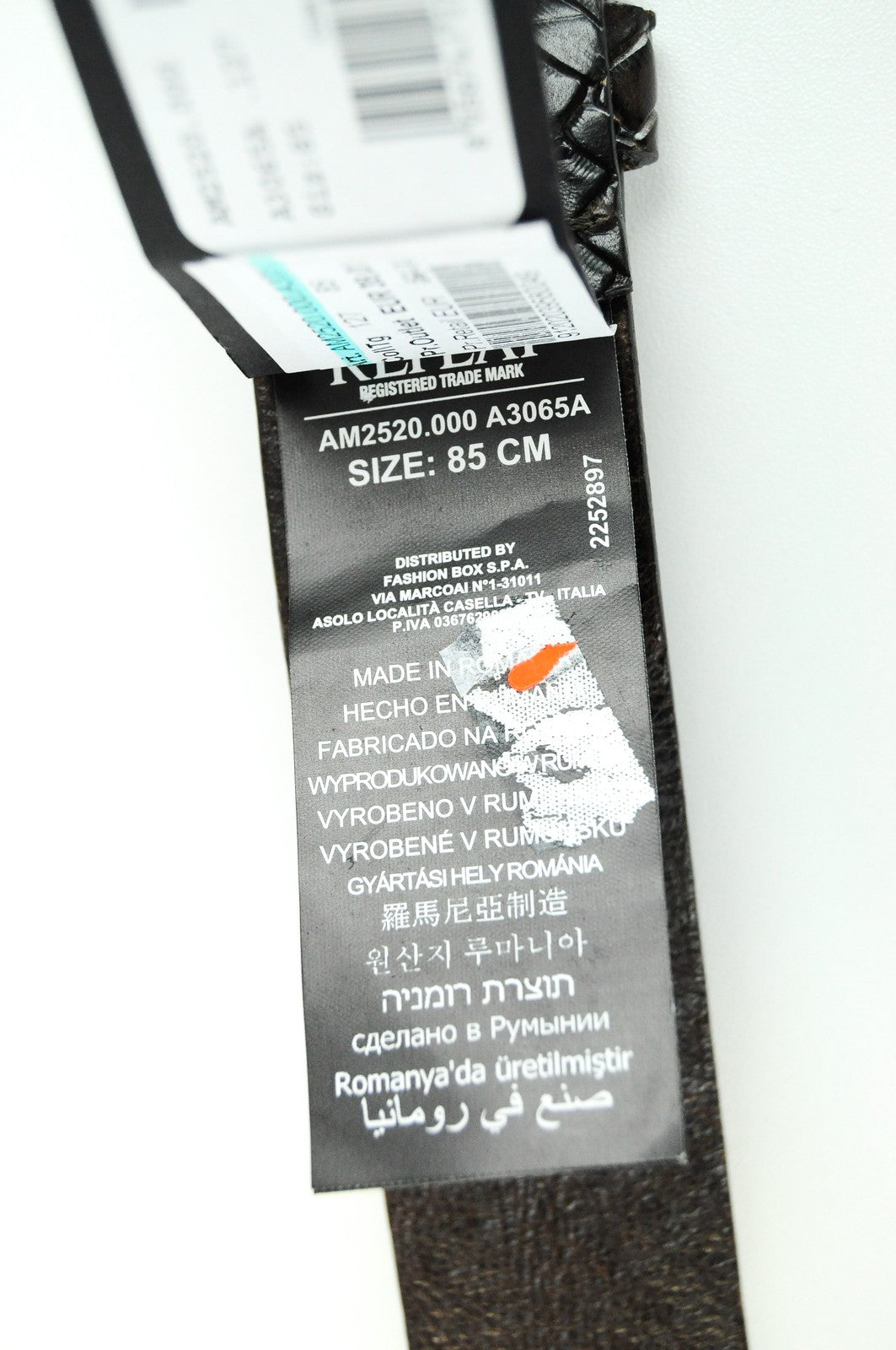 REPLAY Men Belt 85 cm Brown Leather Logo Patterned Squared-End Belt
