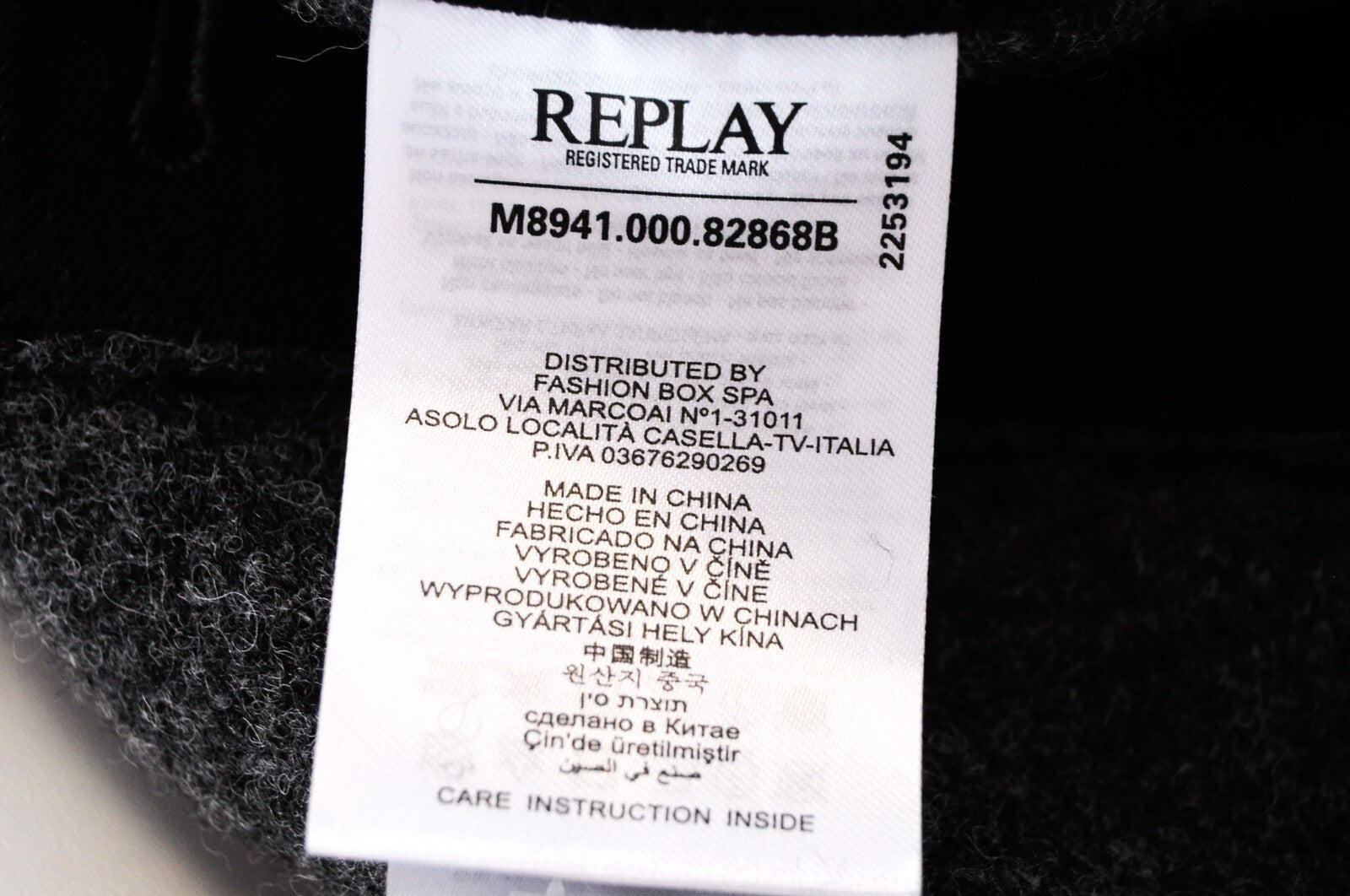 REPLAY Men Coat XL Grey Wool Hooded Single-Breasted Long Sleeve Snap Fasten