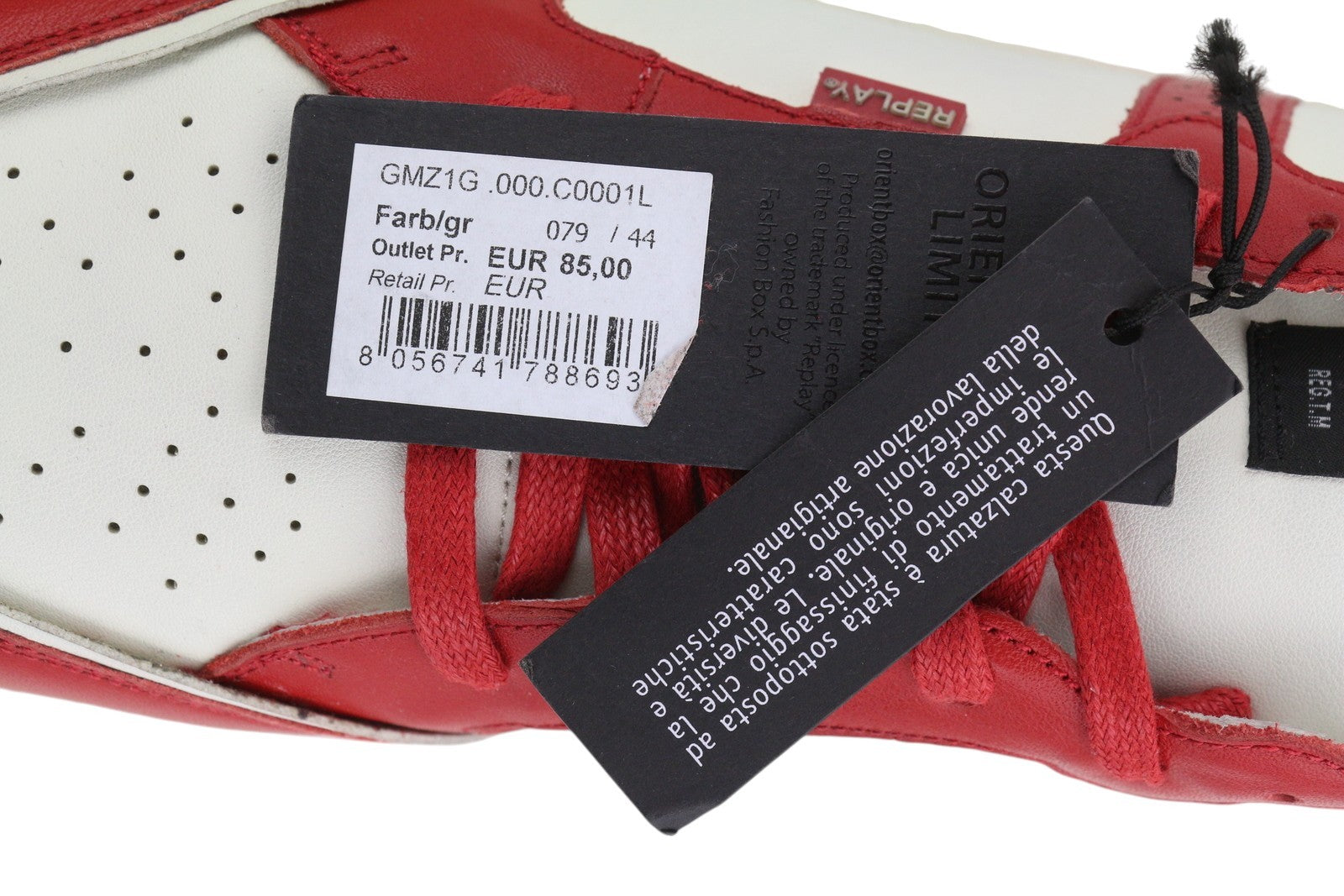 REPLAY Men Sneakers EU44 White Leather Low Top Lace Up Almond Toe Trainers Red