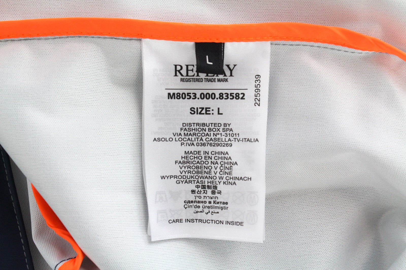 REPLAY Men's Jacket L Grey Hooded Mid-Length Taped Rubber Coated Unlined