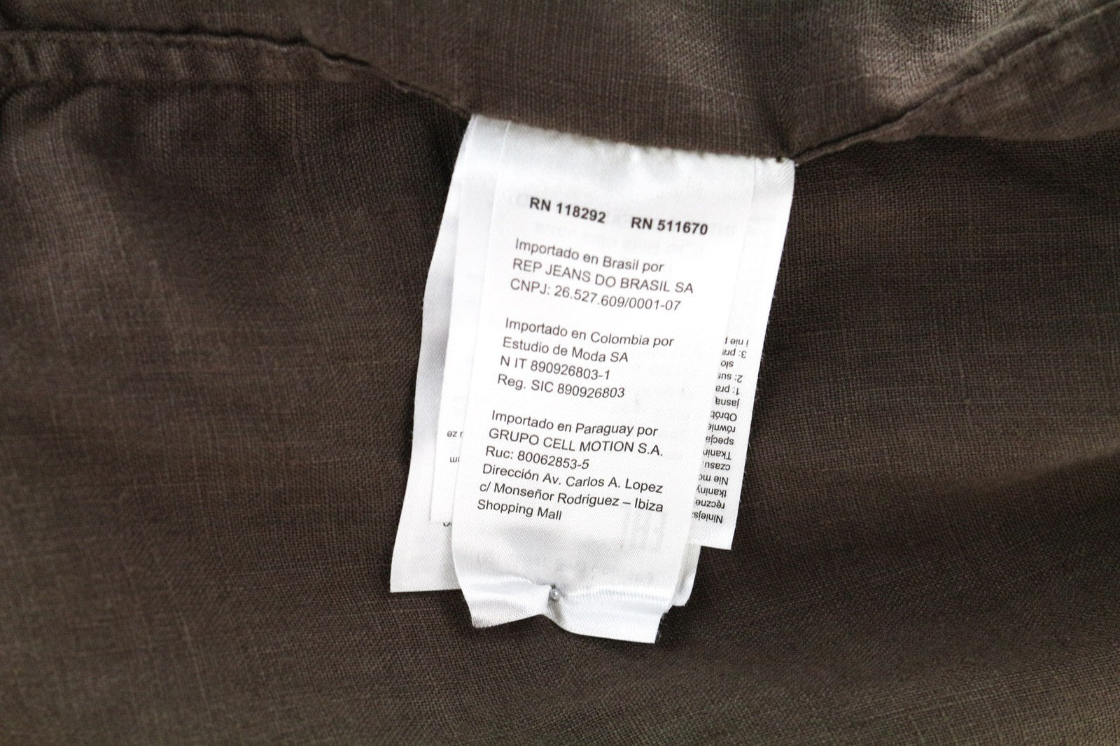 REPLAY Men's L Brown Pure Linen Short Sleeve Pocketed Button-Up Shirt