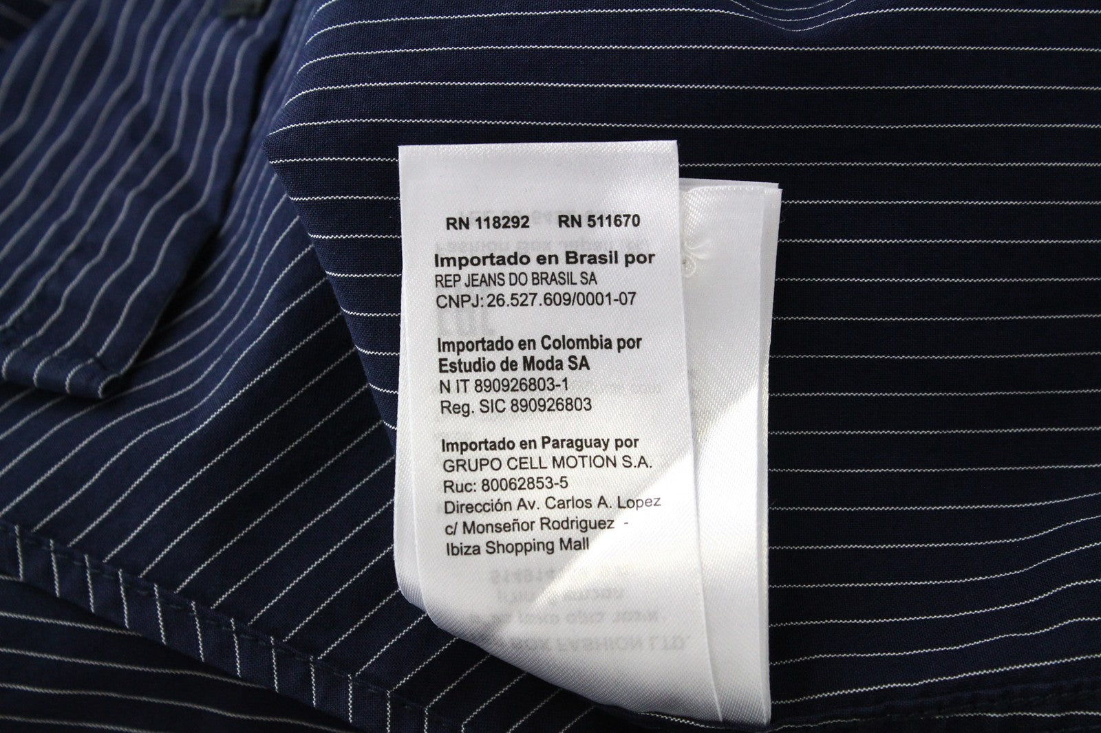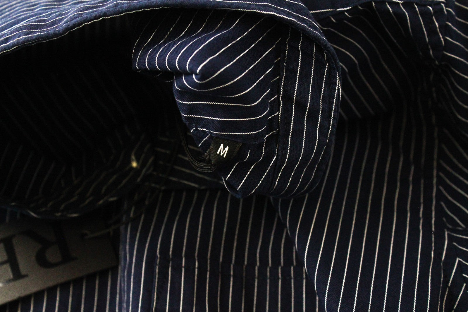 REPLAY Men's Shirt M Dark Blue Twill Striped Pure Cotton Long Sleeve Button-Up