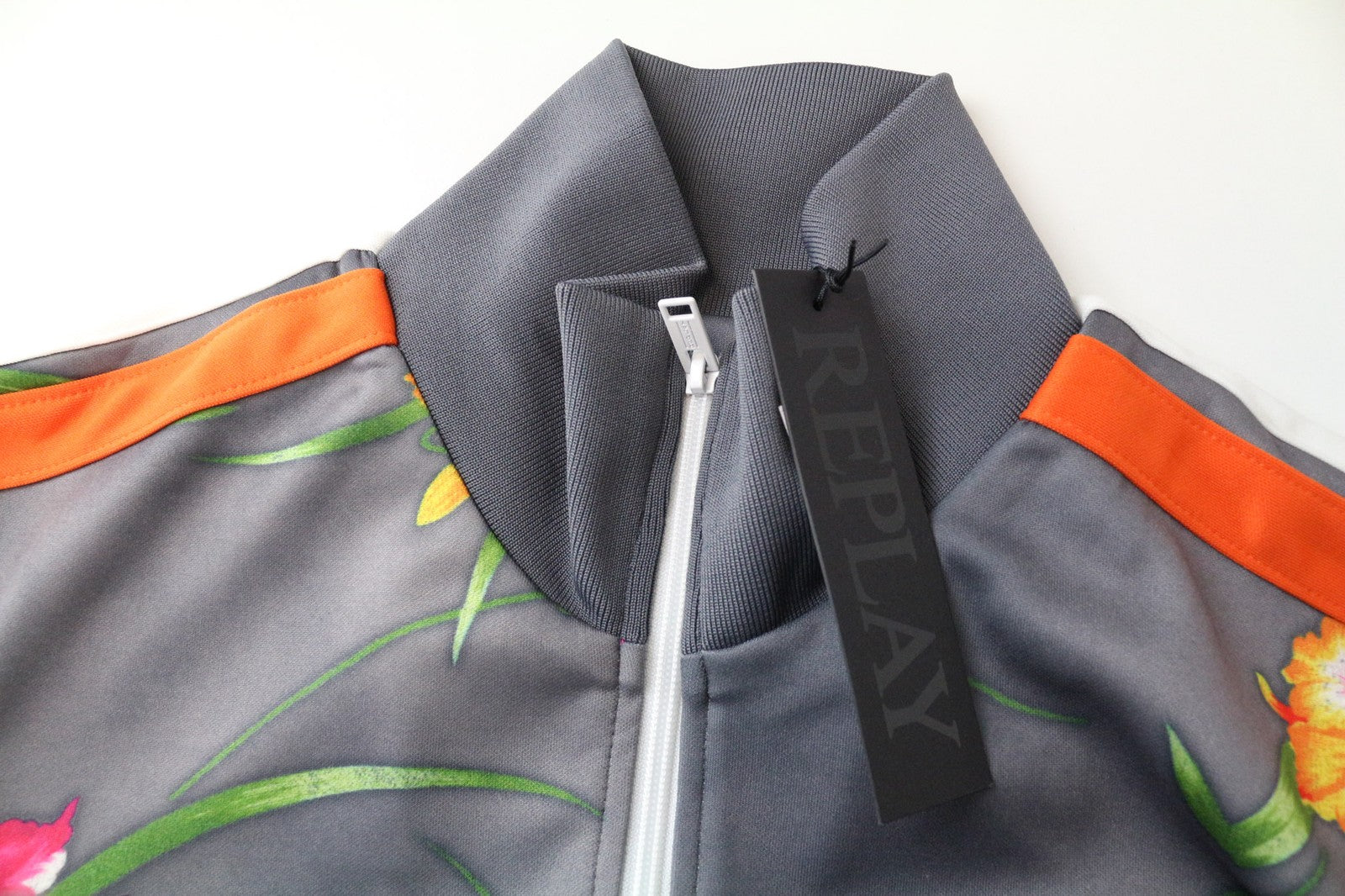 REPLAY Men's Sweatshirt XL Grey Orange Flower Print Zipped Casual Long Sleeve