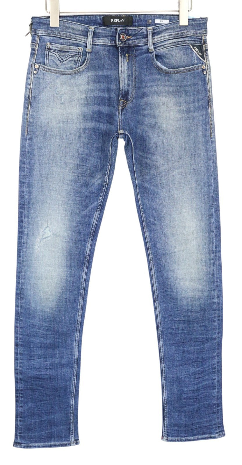 REPLAY Rob Men's Jeans W30/L34 Mid Blue Tapered Fit Stretch Straight Zip Fly