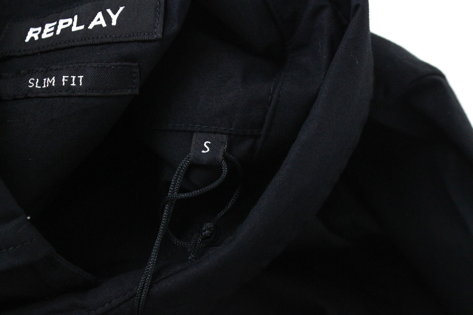 REPLAY S Black Shirt Mens Slim Stretch Cotton Collared Long Sleeve Button-Up