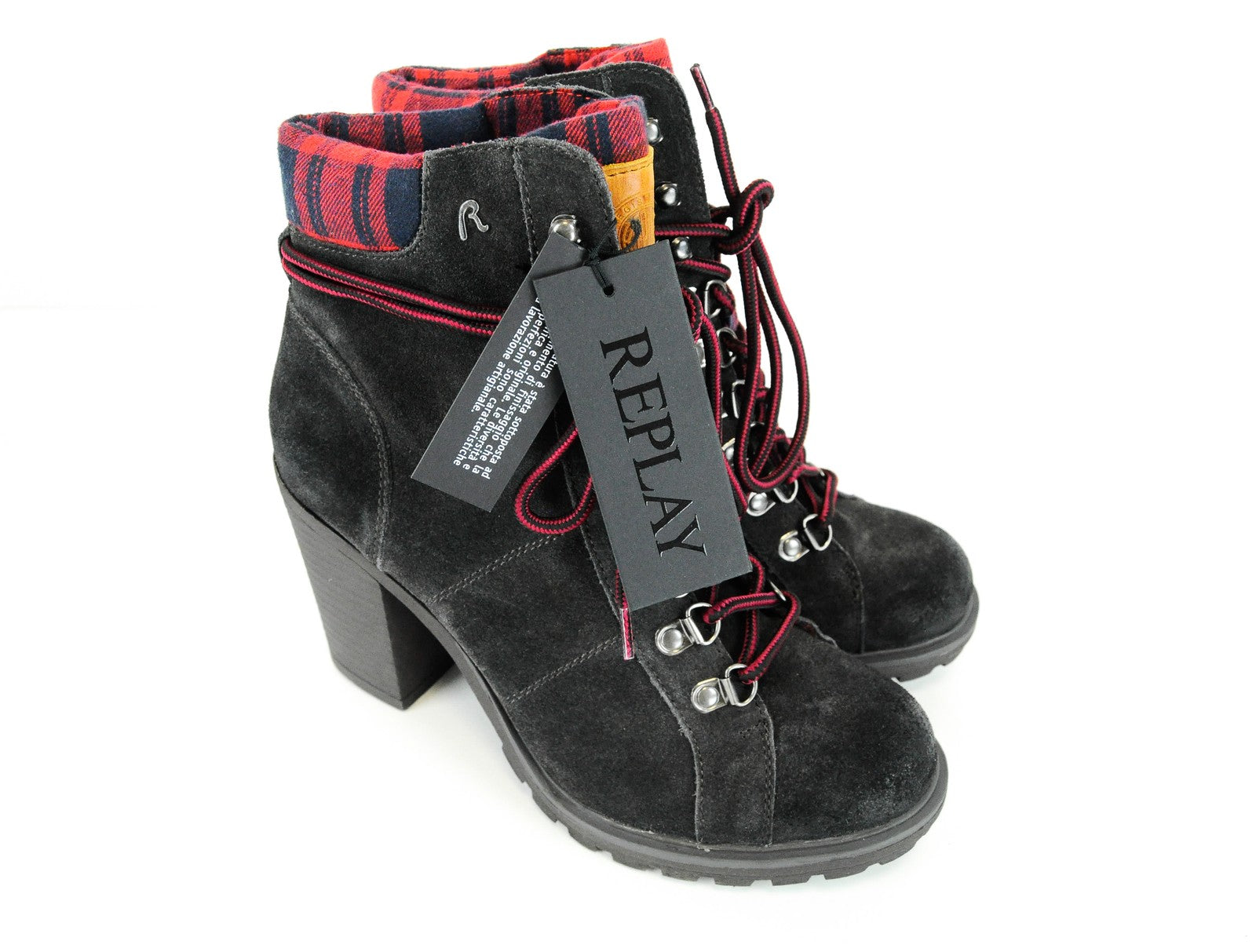 REPLAY Womens Boots EU40 Brown Suede Lace Ankle Heels Casual Footwear