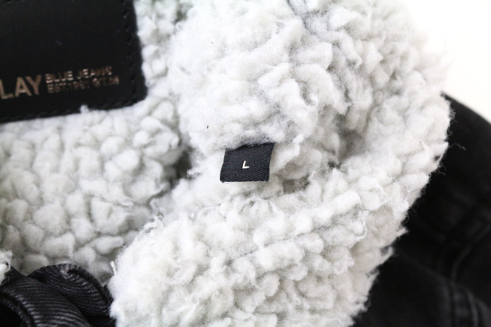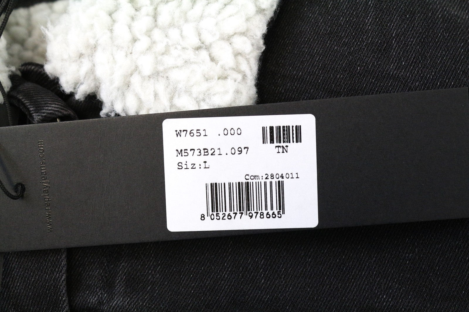 REPLAY Women's Jacket L Black Washed Denim Lined Stretch Cotton Collared Casual