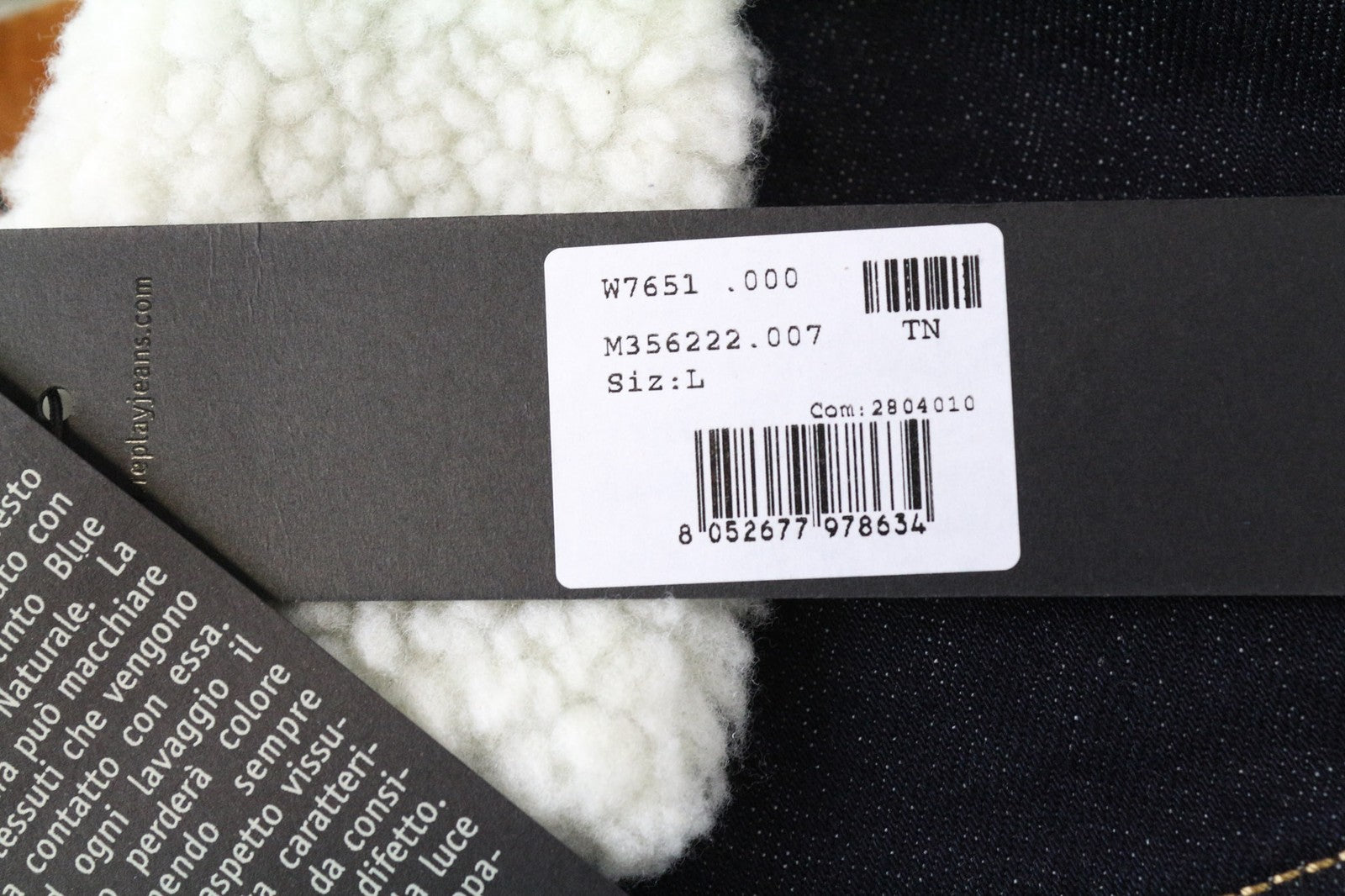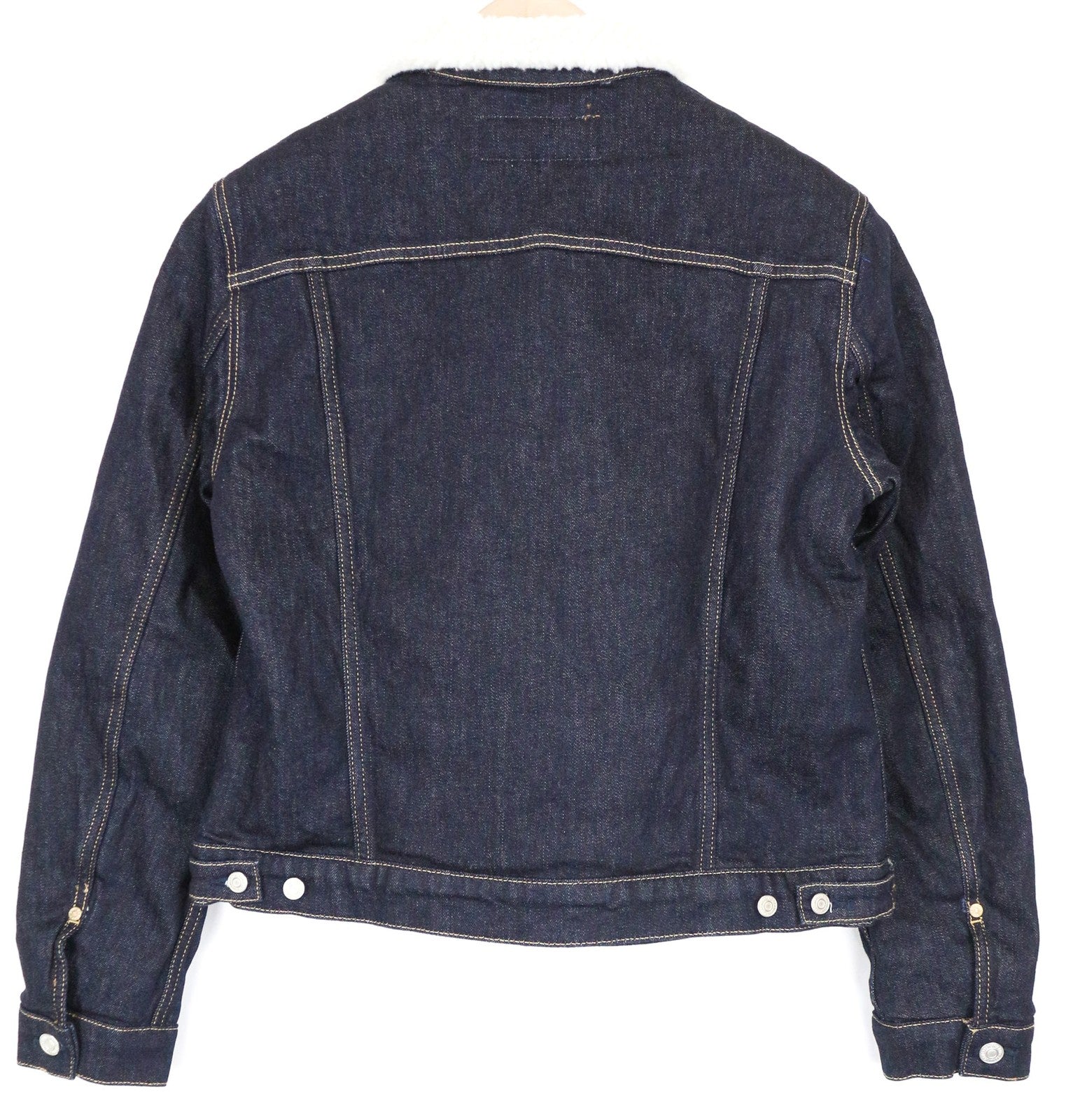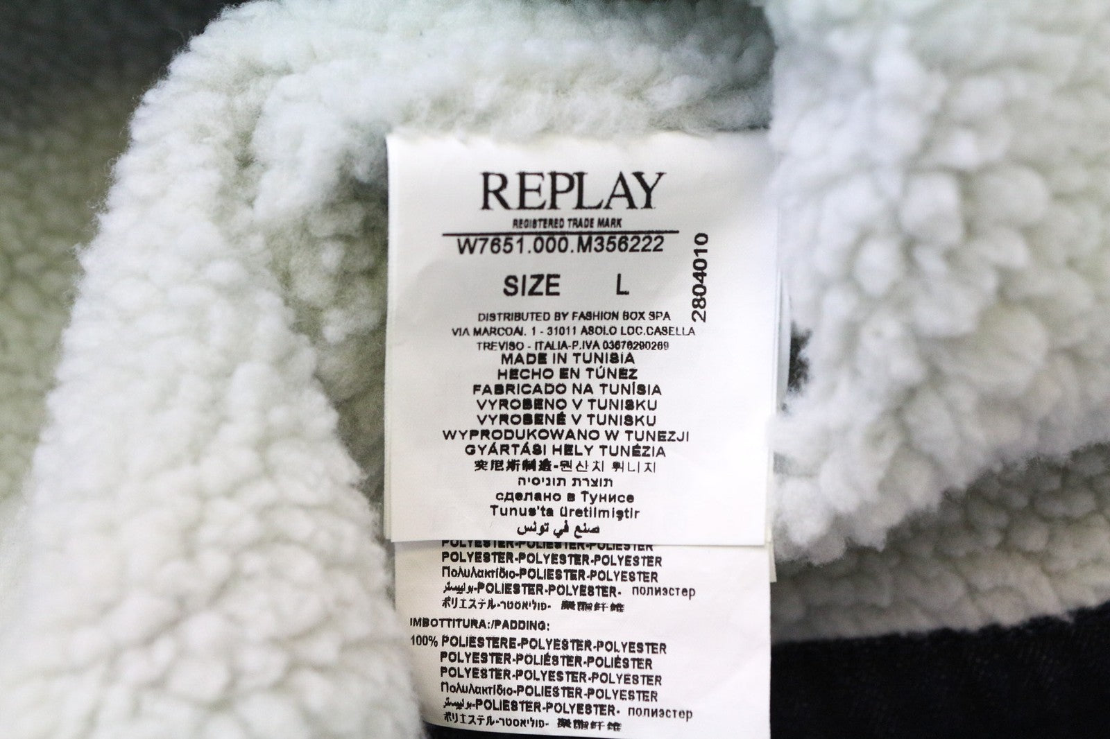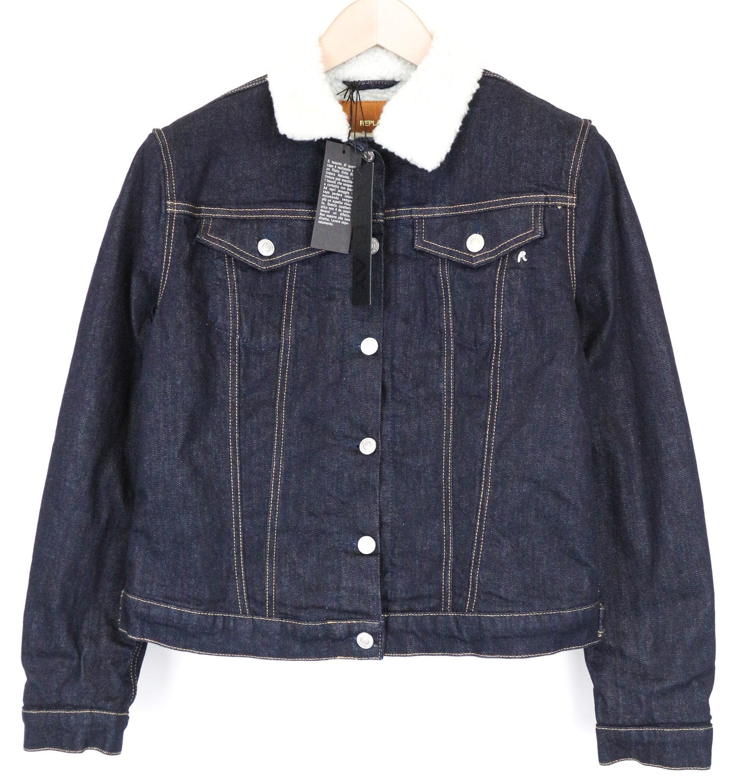 REPLAY Women's Jacket L Dark Blue Denim Cotton Faux Fur Teddy Lined Buttoned